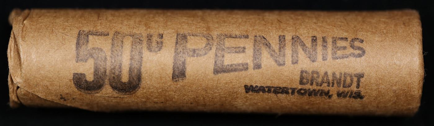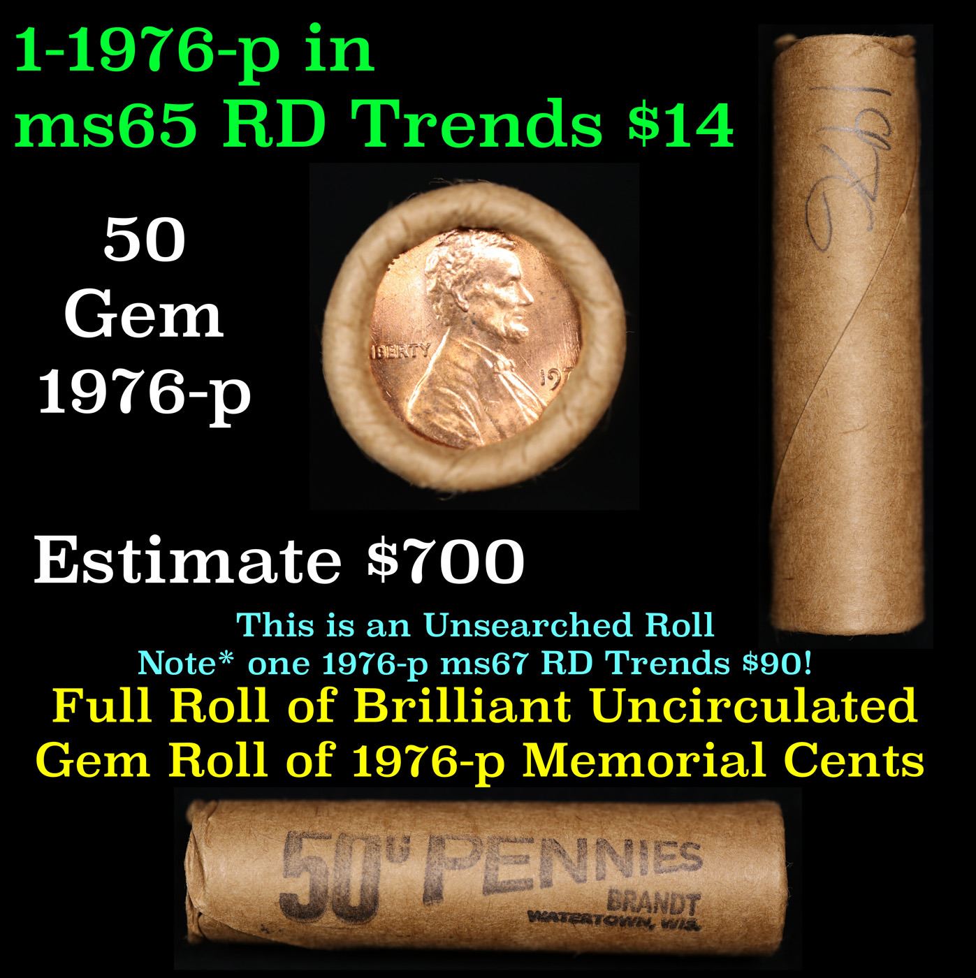 Shotgun Lincoln 1c roll, 1976-p 50 pcs Brandt Wrapper. A terrific Shotgun roll of Lincoln cents. All coins appear to be cherry red. Trends ms65 rd $26