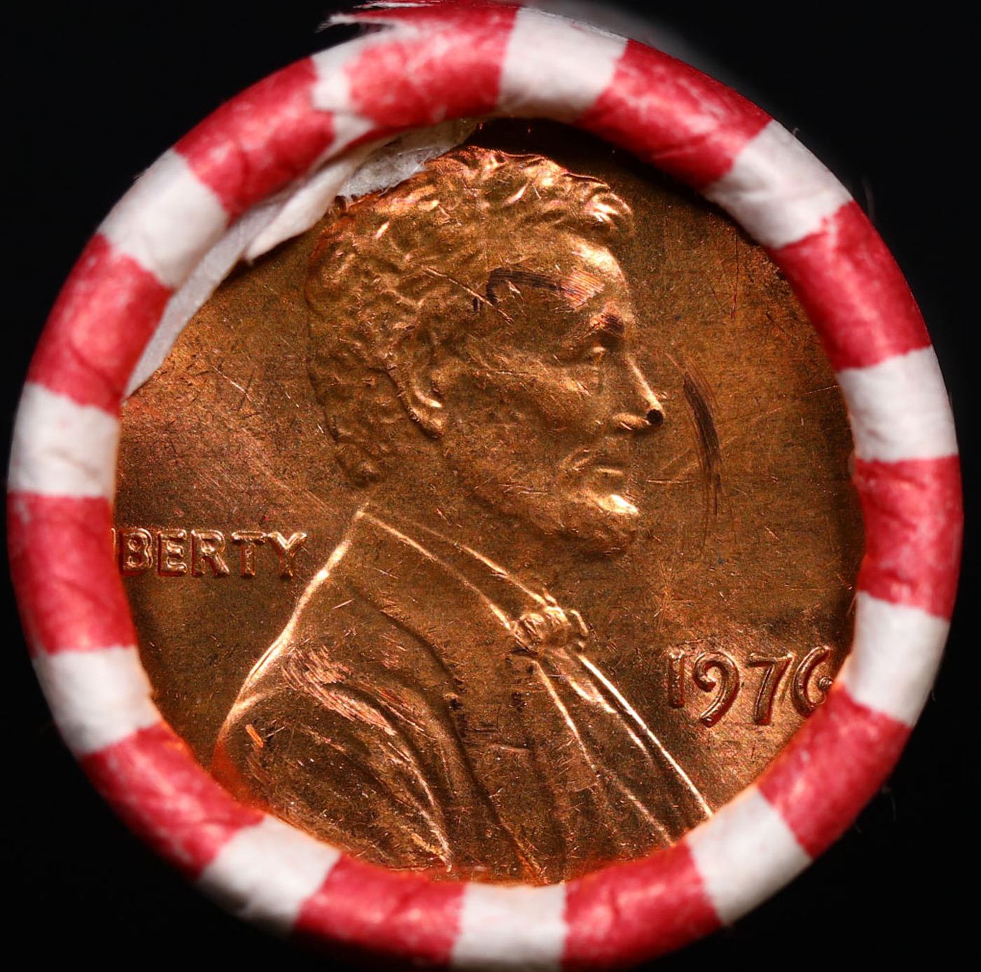 Shotgun Lincoln 1c roll, 1976-p 50 pcs Steel Strong Wrapper.. A terrific Shotgun roll of Lincoln cents. Most if not all coin should be cherry red.