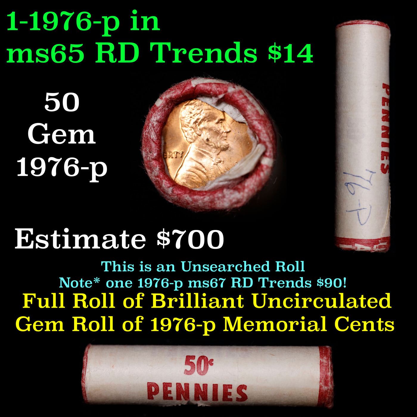 Shotgun Lincoln 1c roll, 1976-p 50 pcs Wrapper.. A terrific Shotgun roll of Lincoln cents. Most if not all coin should be cherry red. Trends ms65 rd $14