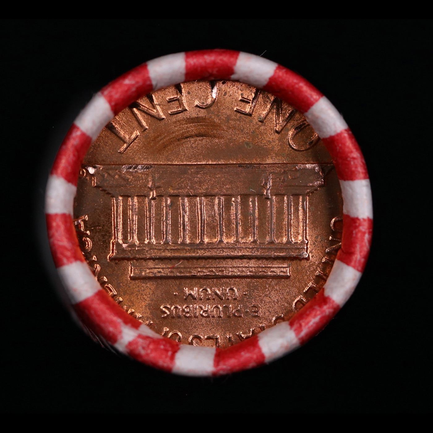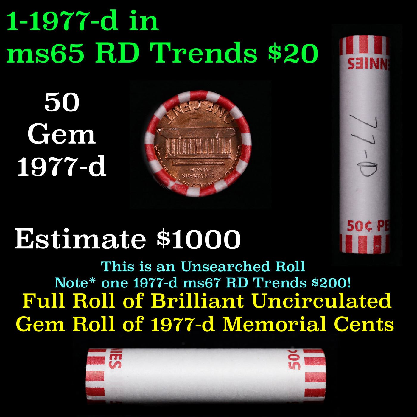 Shotgun Lincoln 1c roll, 1977-d 50 pcs Bank Wrapper.. A terrific Shotgun roll of Lincoln cents. Most if not all coin should be cherry red.