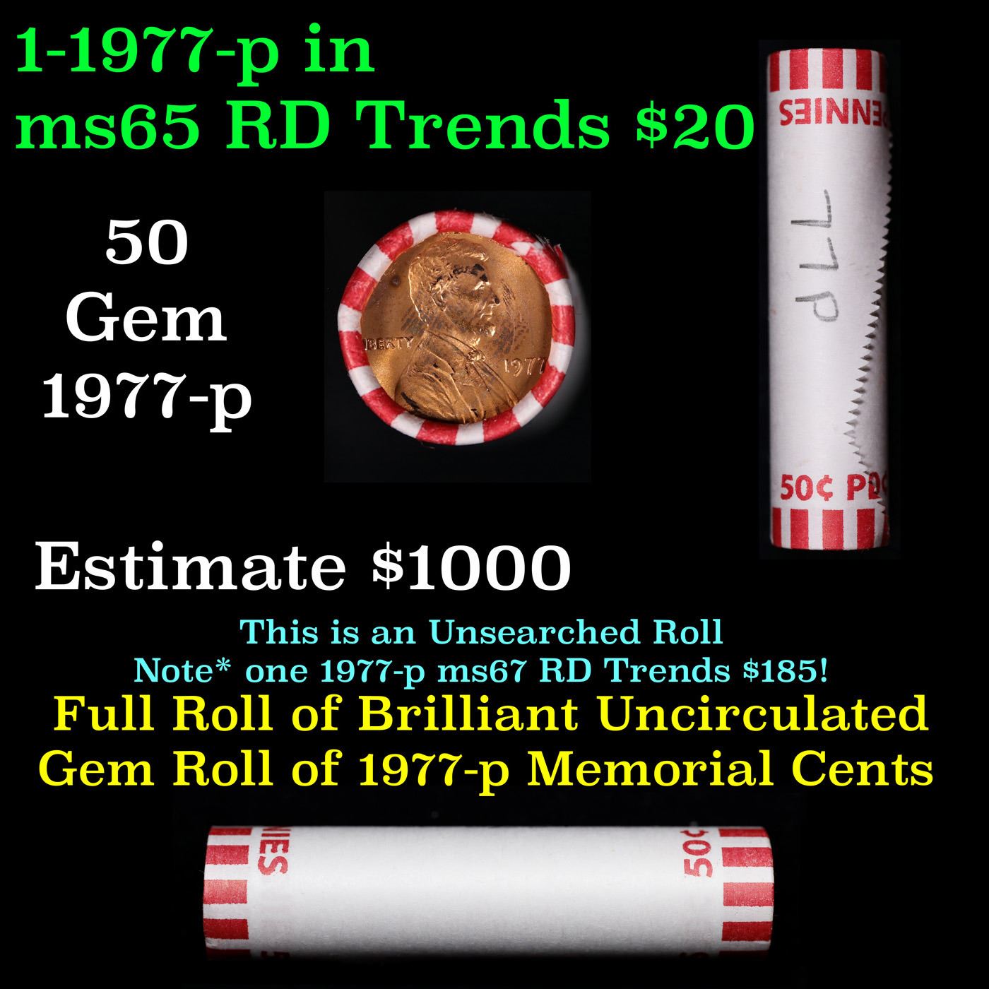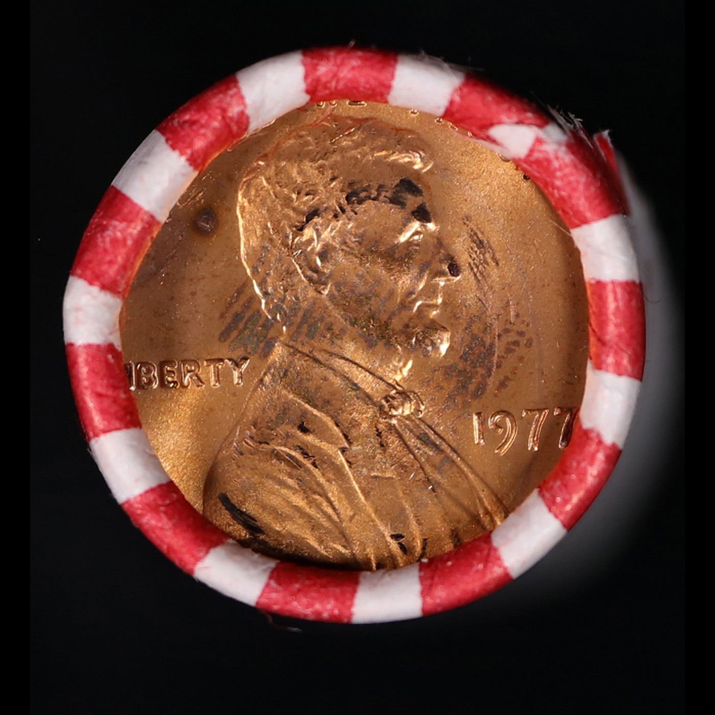 Shotgun Lincoln 1c roll, 1977-p 50 pcs Bank Wrapper.. A terrific Shotgun roll of Lincoln cents. Most if not all coin should be cherry red.