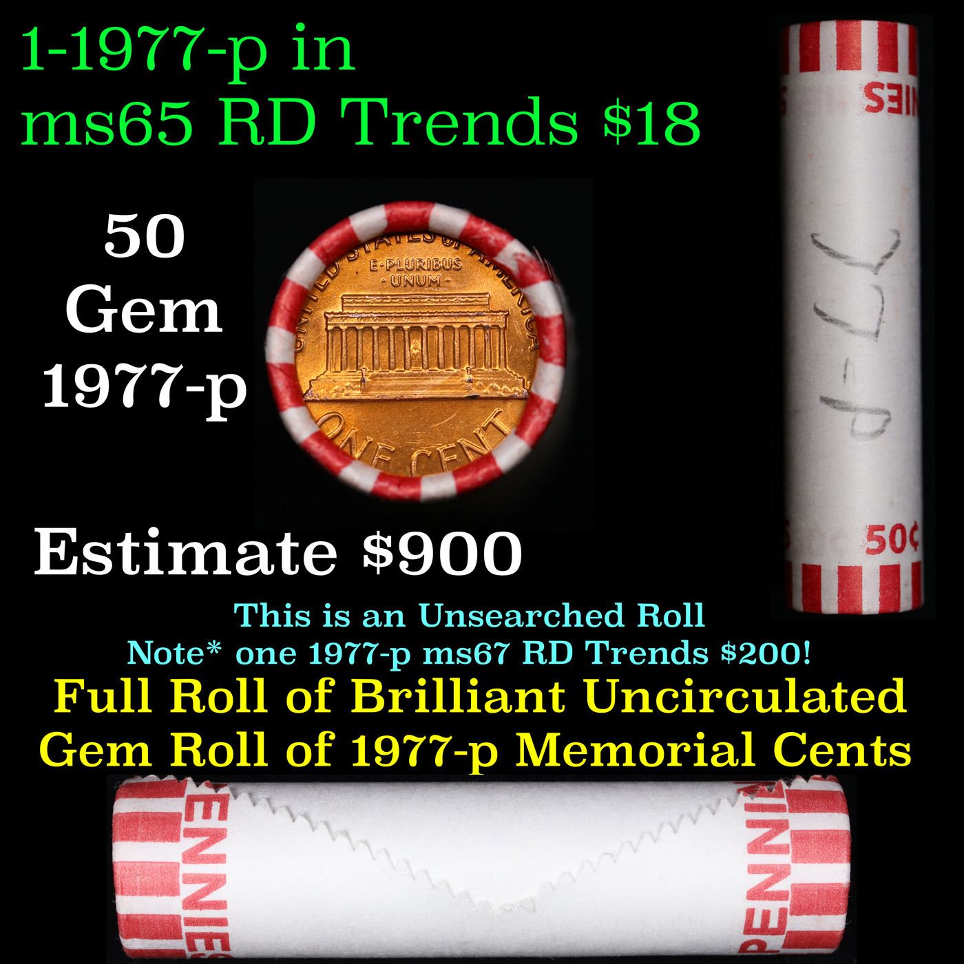 Shotgun Lincoln 1c roll, 1977-p 50 pcs Bank Wrapper.. A terrific Shotgun roll of Lincoln cents. Most if not all coin should be cherry red.