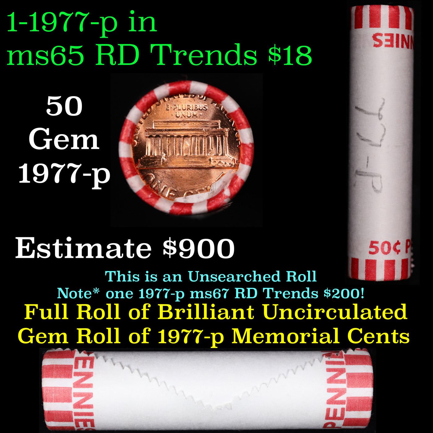Shotgun Lincoln 1c roll, 1977-p 50 pcs Bank Wrapper.. A terrific Shotgun roll of Lincoln cents. Most if not all coin should be cherry red.