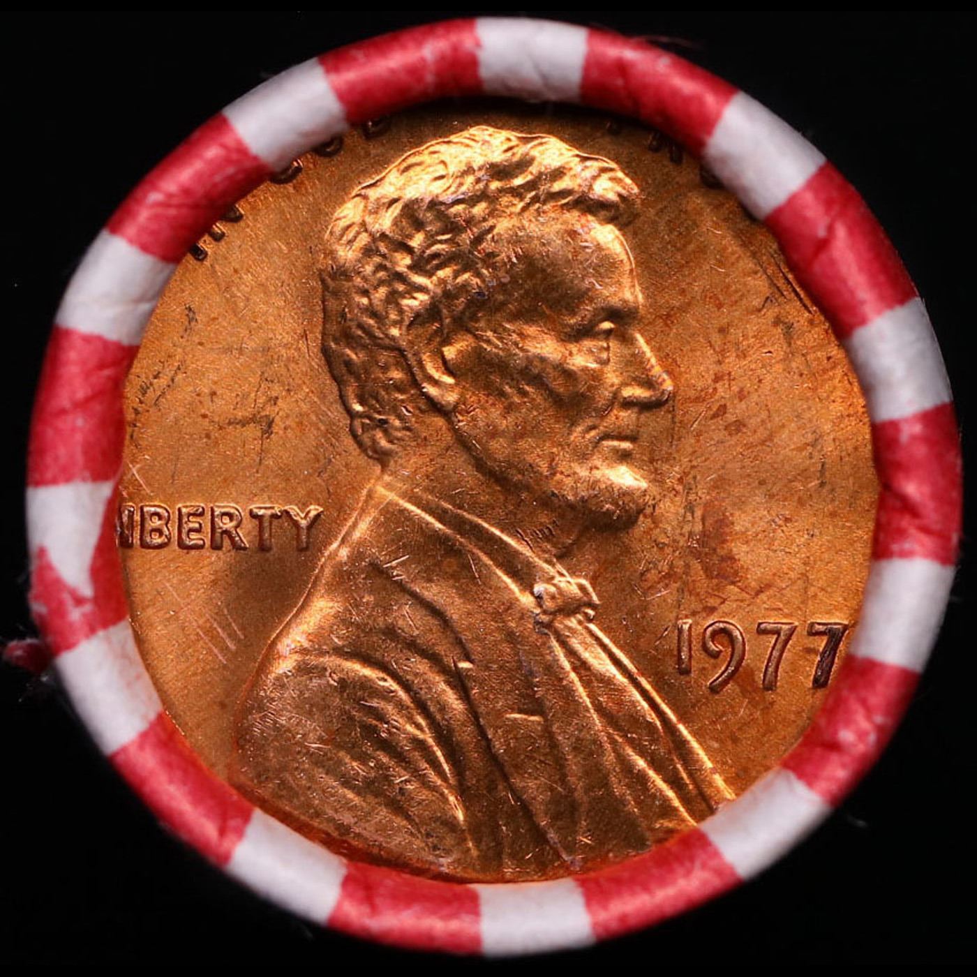 Shotgun Lincoln 1c roll, 1977-p 50 pcs Bank Wrapper.. A terrific Shotgun roll of Lincoln cents. Most if not all coin should be cherry red.