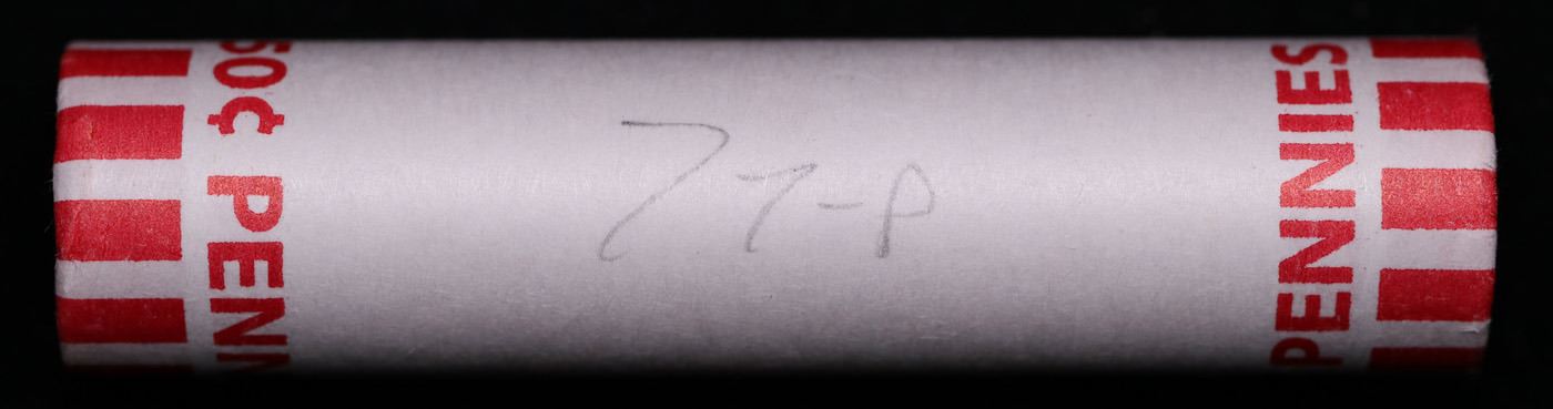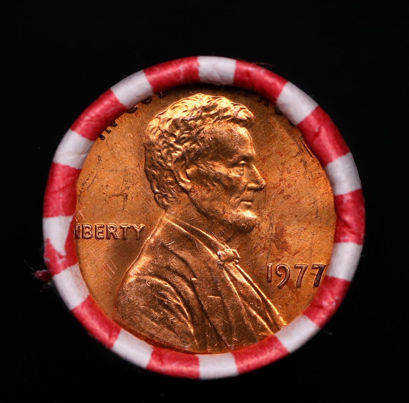 Shotgun Lincoln 1c roll, 1977-p 50 pcs Bank Wrapper.. A terrific Shotgun roll of Lincoln cents. Most if not all coin should be cherry red.