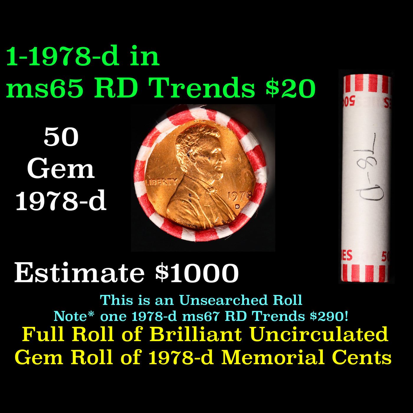 Shotgun Lincoln 1c roll, 1978-d 50 pcs Bank Wrapper.. A terrific Shotgun roll of Lincoln cents. Most if not all coin should be cherry red.