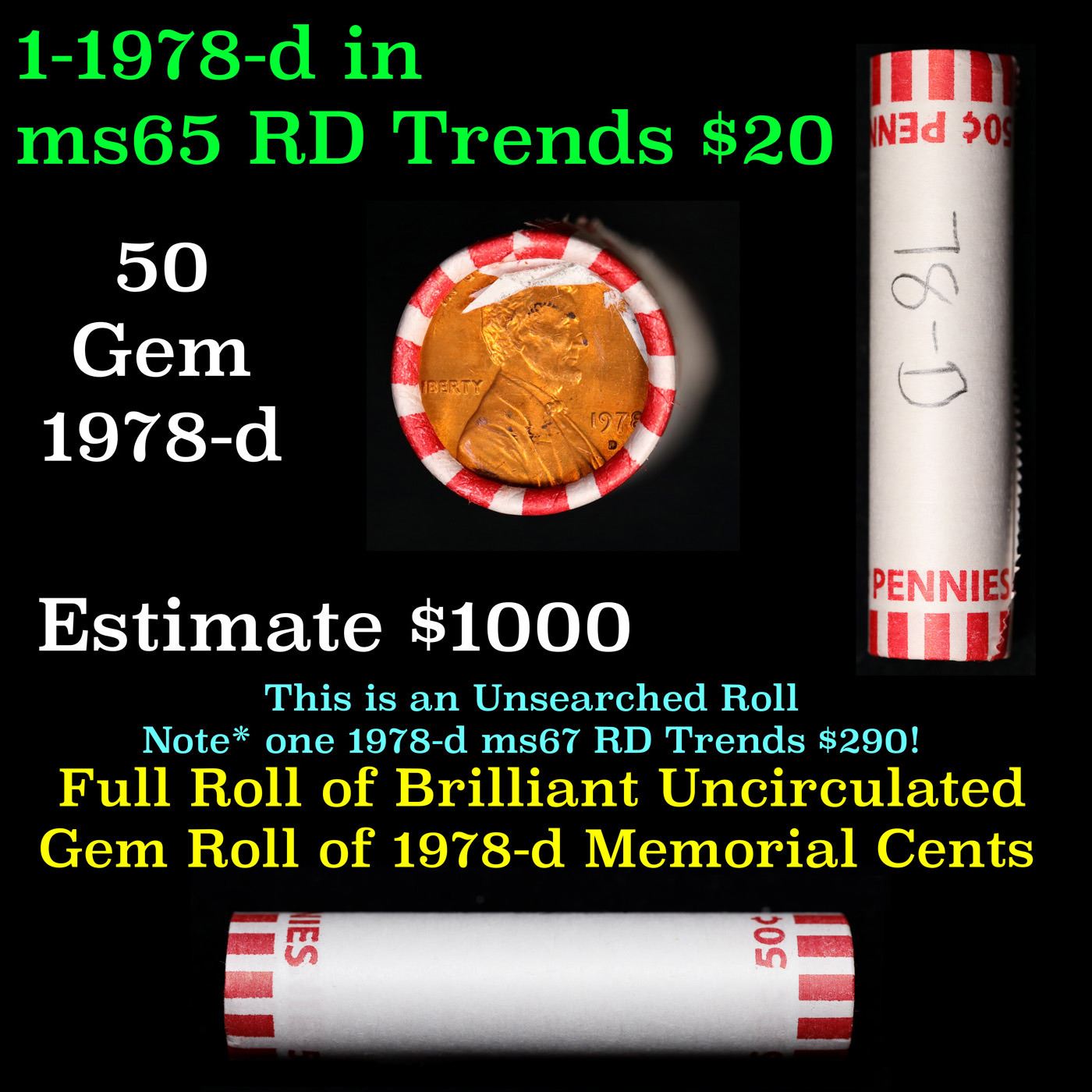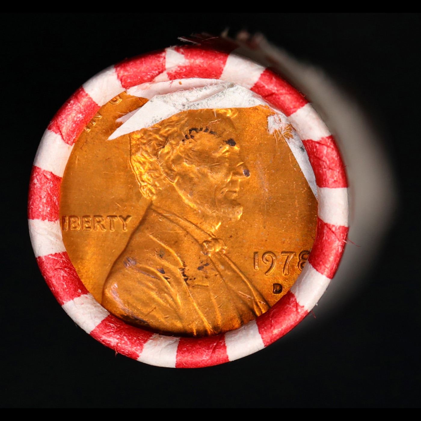 Shotgun Lincoln 1c roll, 1978-d 50 pcs Bank Wrapper.. A terrific Shotgun roll of Lincoln cents. Most if not all coin should be cherry red.
