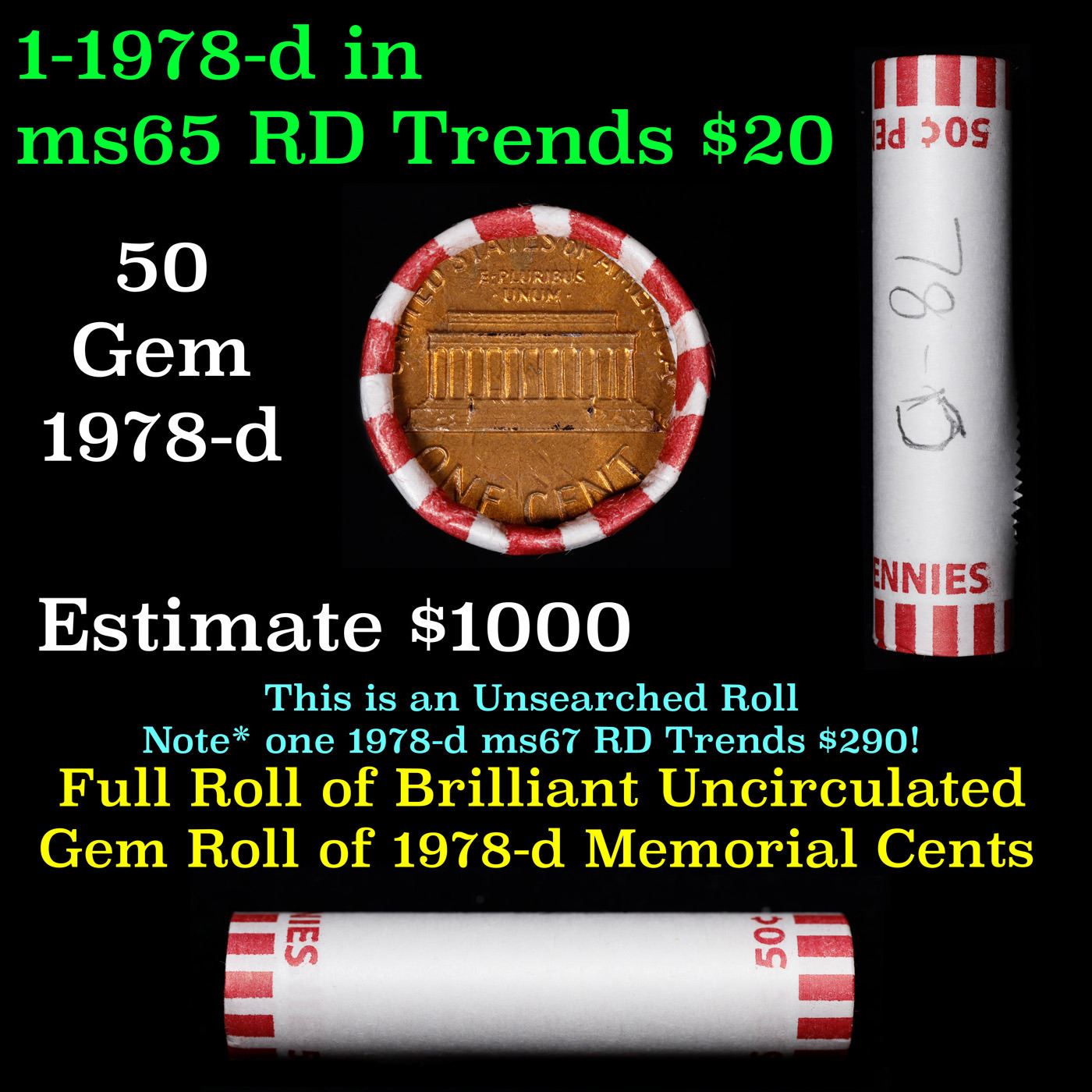 Shotgun Lincoln 1c roll, 1978-d 50 pcs Bank Wrapper.. A terrific Shotgun roll of Lincoln cents. Most if not all coin should be cherry red.