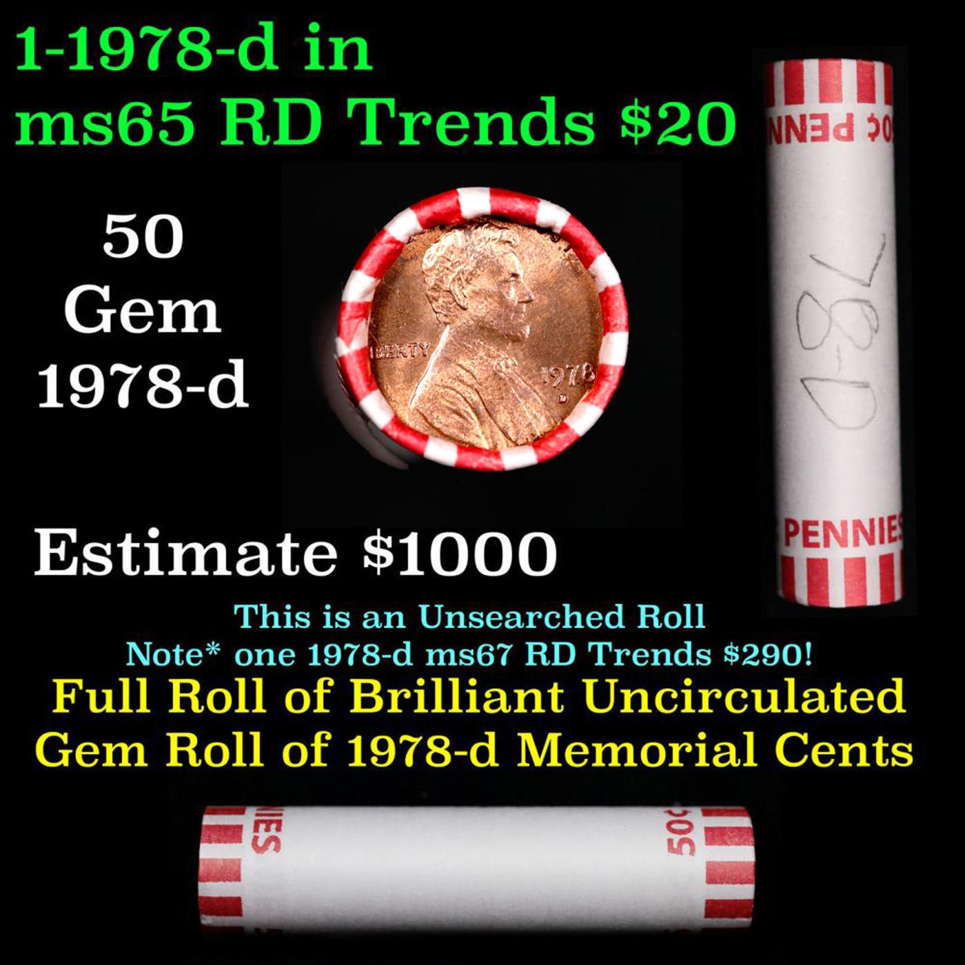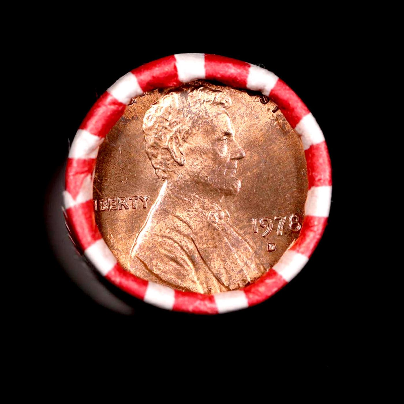 Shotgun Lincoln 1c roll, 1978-d 50 pcs Bank Wrapper.. A terrific Shotgun roll of Lincoln cents. Most if not all coin should be cherry red.
