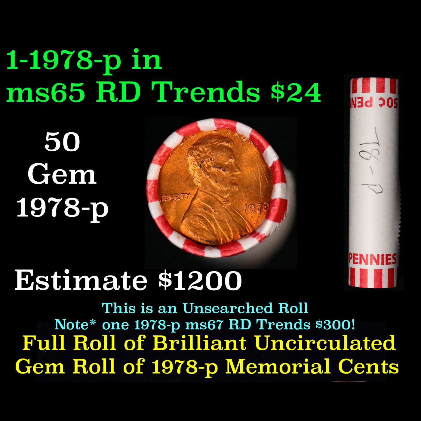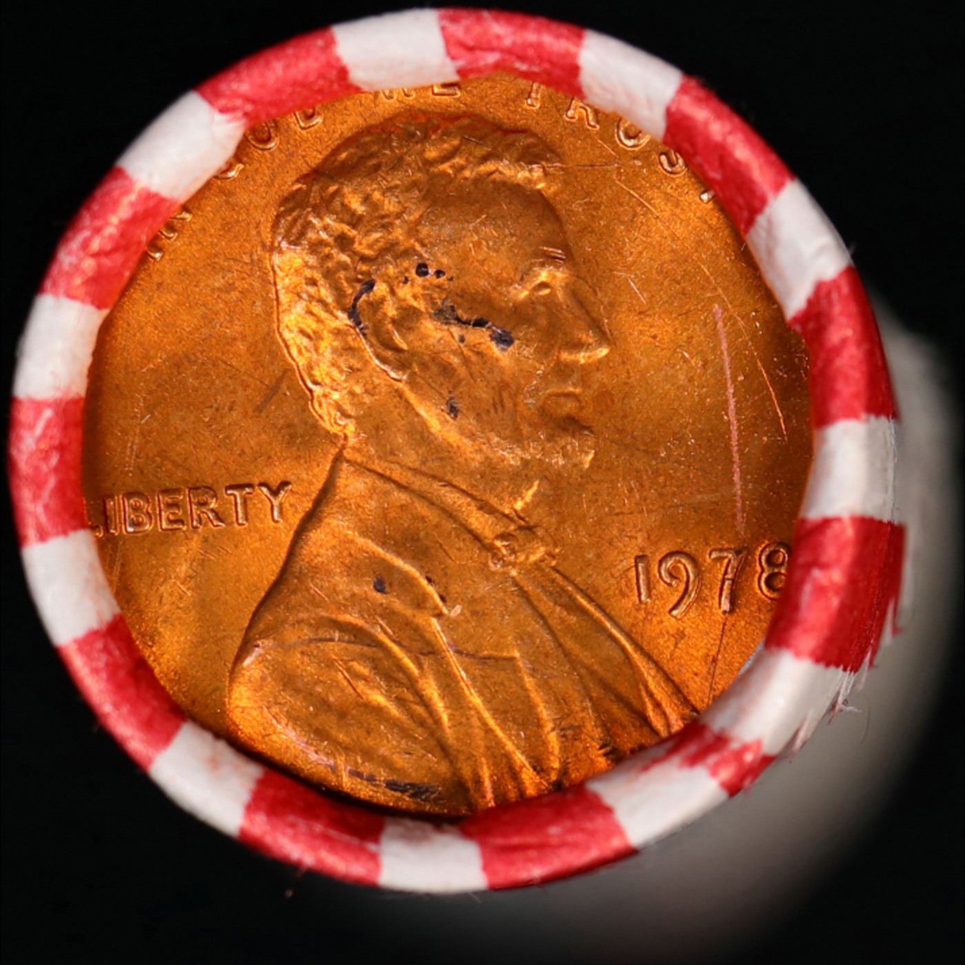 Shotgun Lincoln 1c roll, 1978-p 50 pcs Bank Wrapper.. A terrific Shotgun roll of Lincoln cents. Most if not all coin should be cherry red.