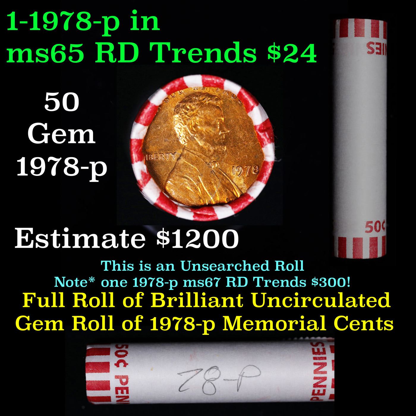 Shotgun Lincoln 1c roll, 1978-p 50 pcs Bank Wrapper.. A terrific Shotgun roll of Lincoln cents. Most if not all coin should be cherry red.