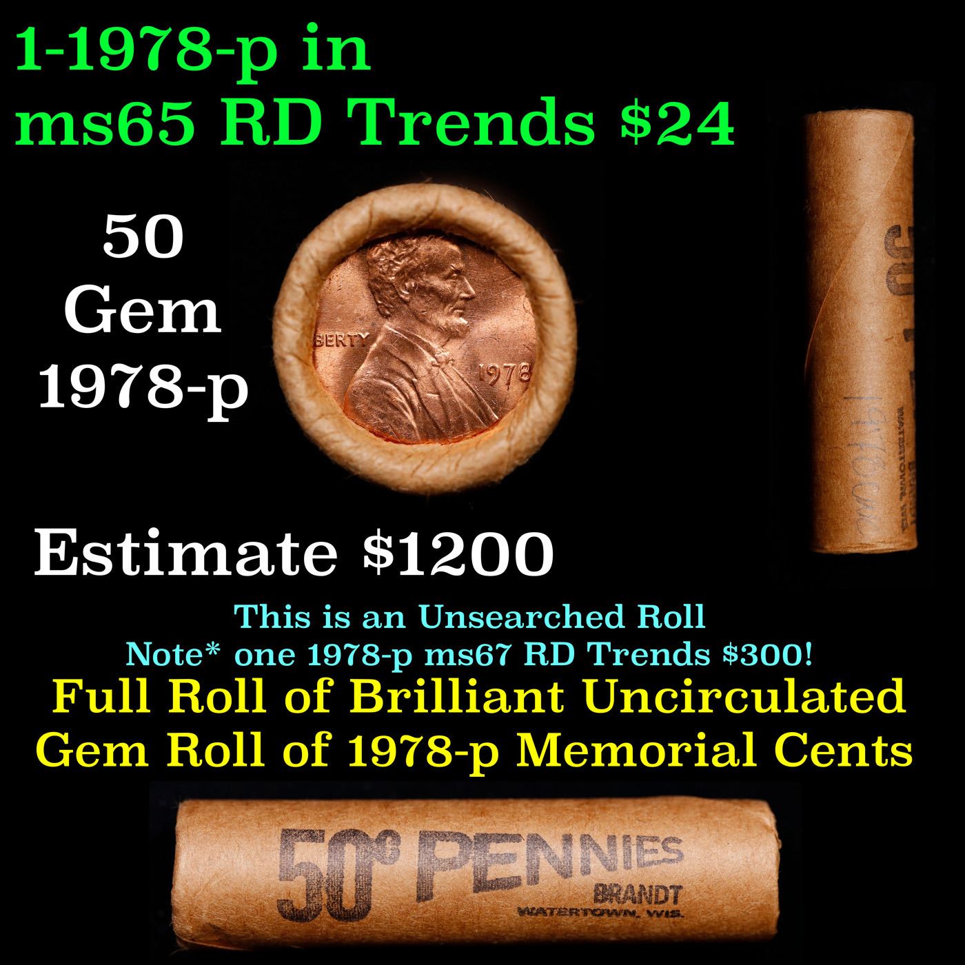 Shotgun Lincoln 1c roll, 1978-p 50 pcs Brandt Wrapper.. A terrific Shotgun roll of Lincoln cents. Most if not all coin should be cherry red.