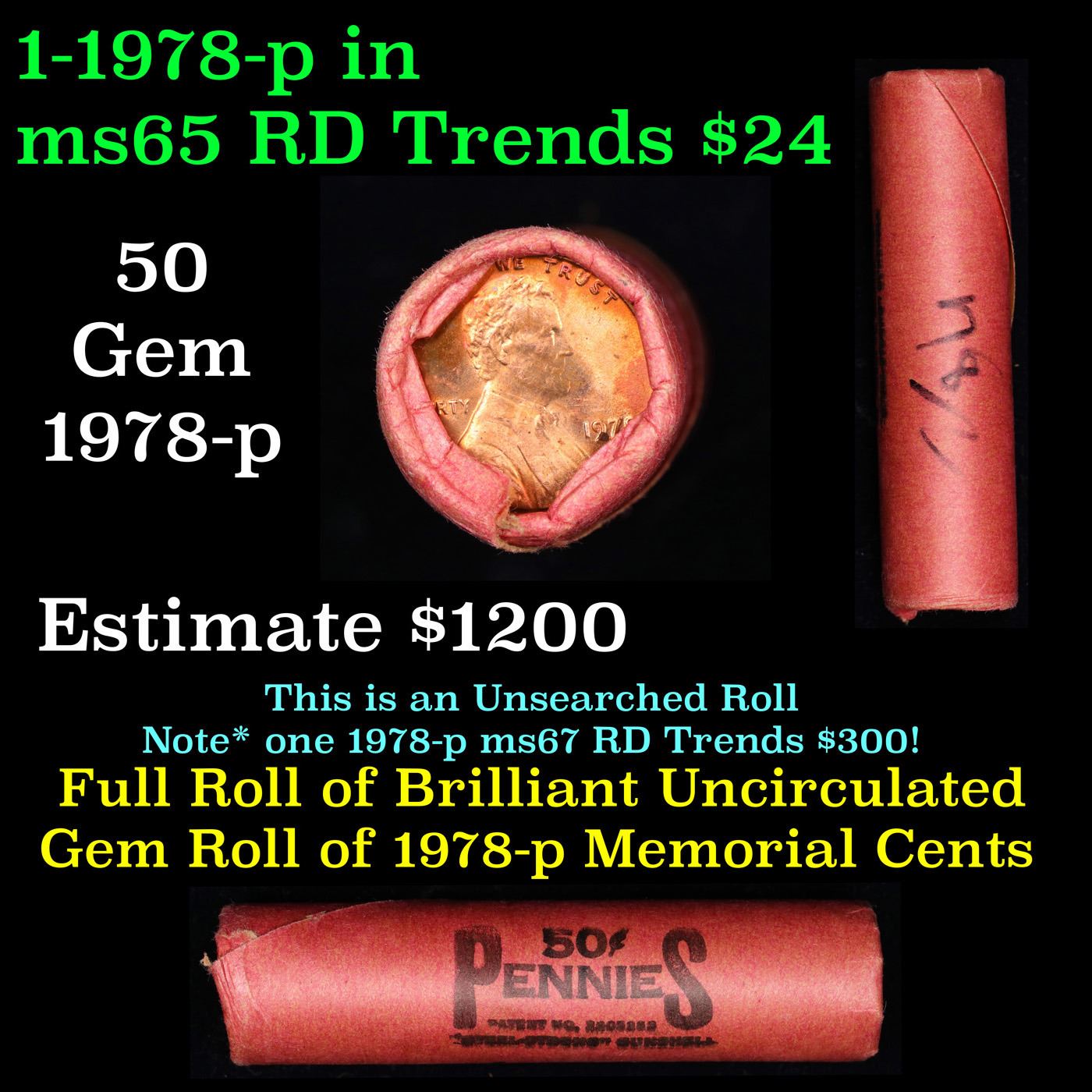 Shotgun Lincoln 1c roll, 1978-p 50 pcs Steel-Strong Wrapper.. A terrific Shotgun roll of Lincoln cents. Most if not all coin should be cherry red.
