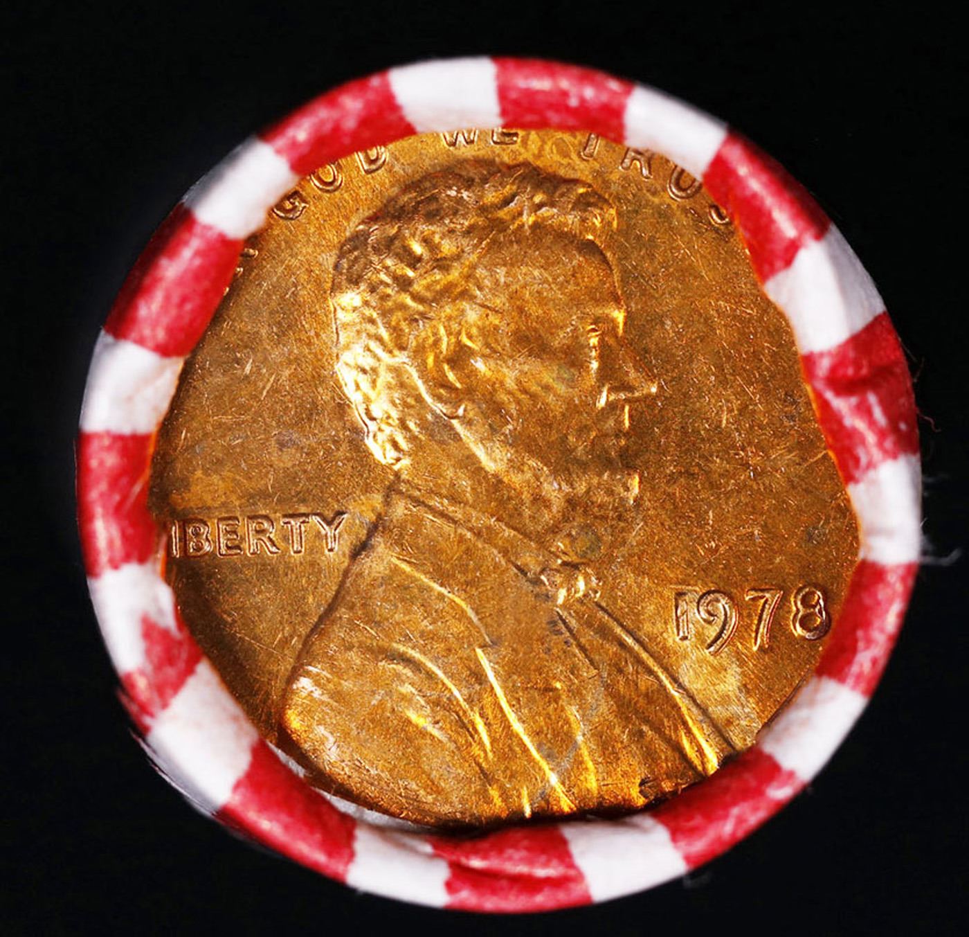 Shotgun Lincoln 1c roll, 1978-p 50 pcs Vintage Steel-Strong Wrapper.. A terrific Shotgun roll of Lincoln cents. Most if not all coin should be cherry red.