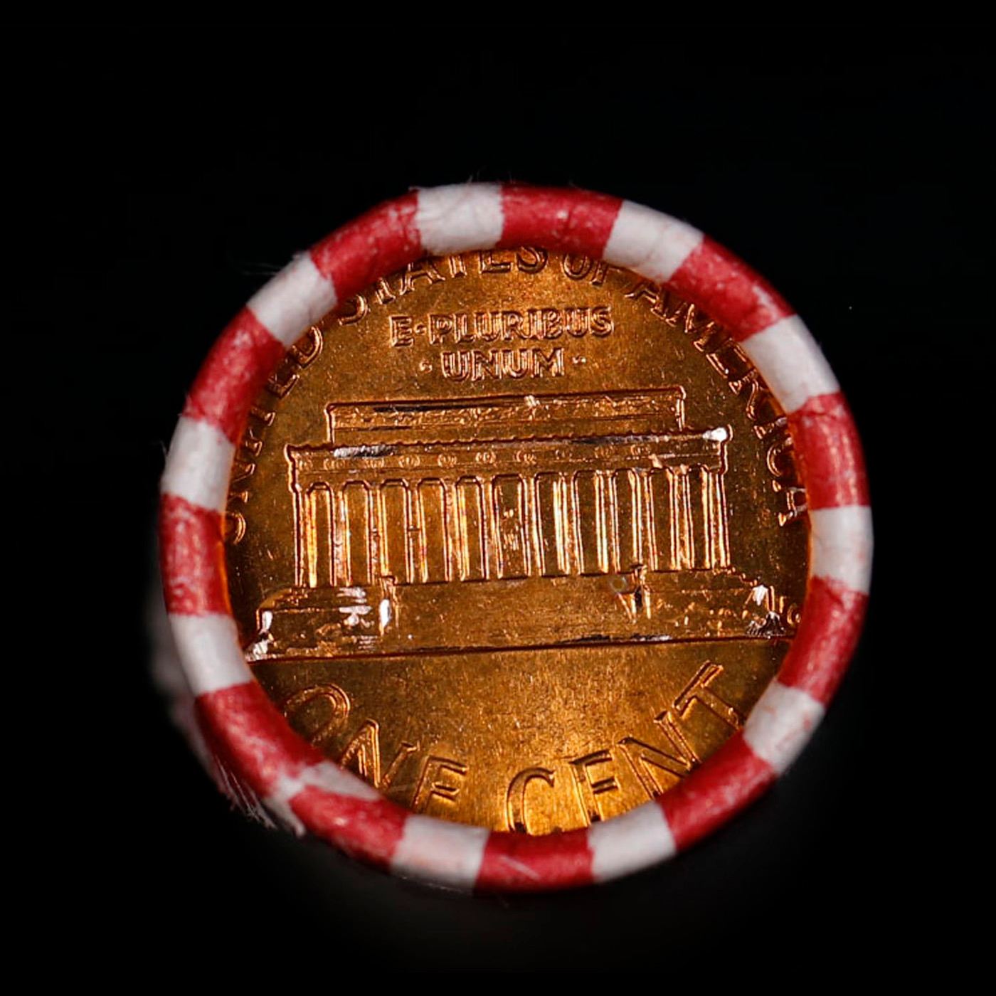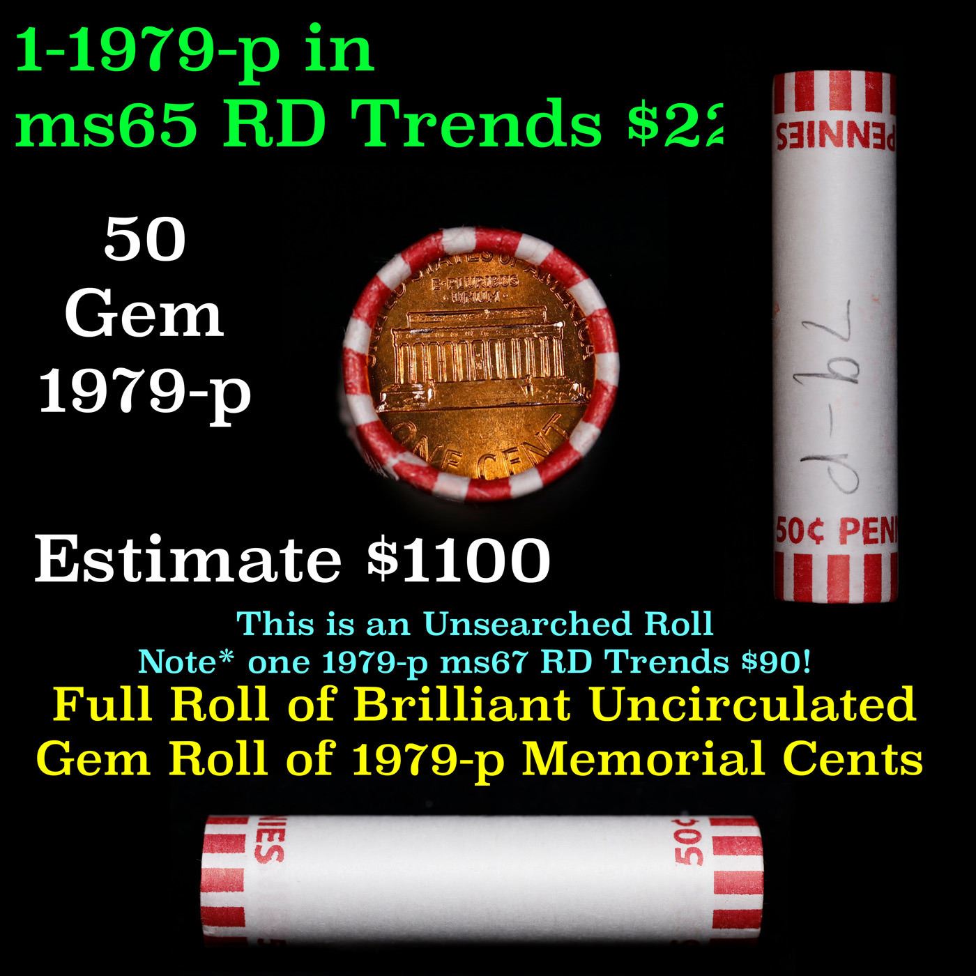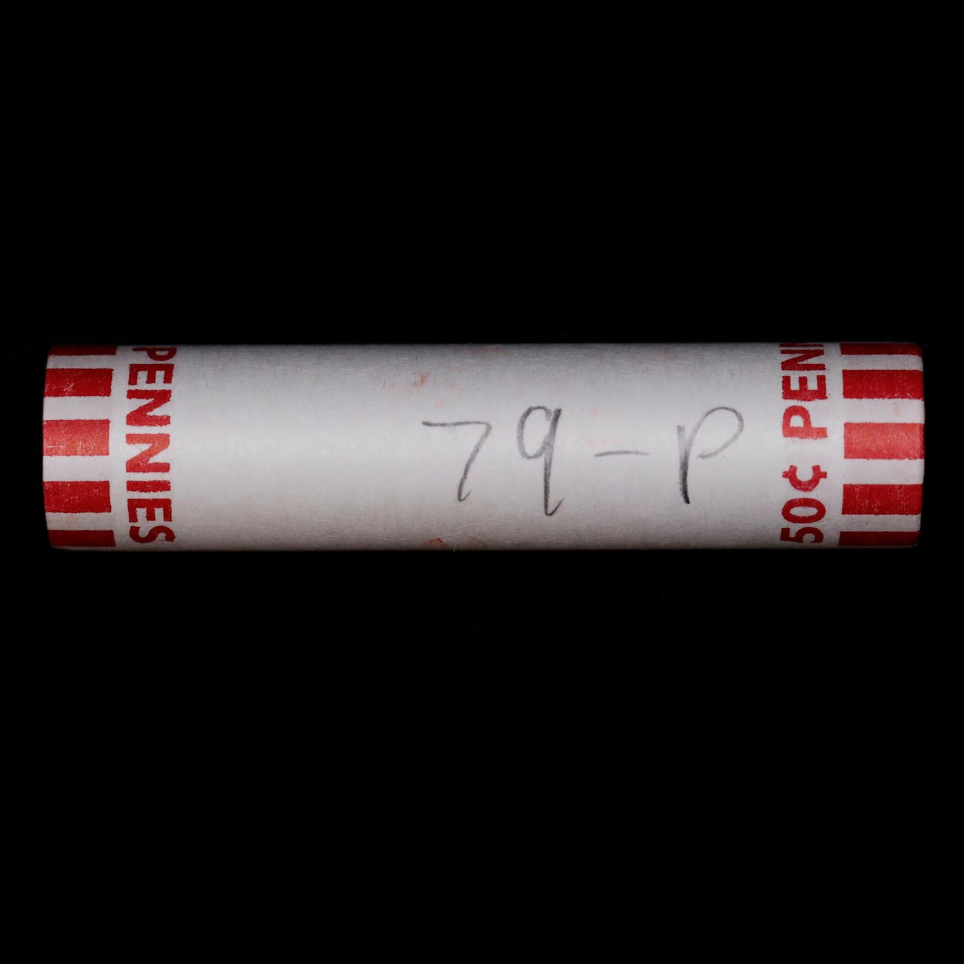 Shotgun Lincoln 1c roll, 1979-d 50 pcs Bank Wrapper.. A terrific Shotgun roll of Lincoln cents. Most if not all coin should be cherry red.