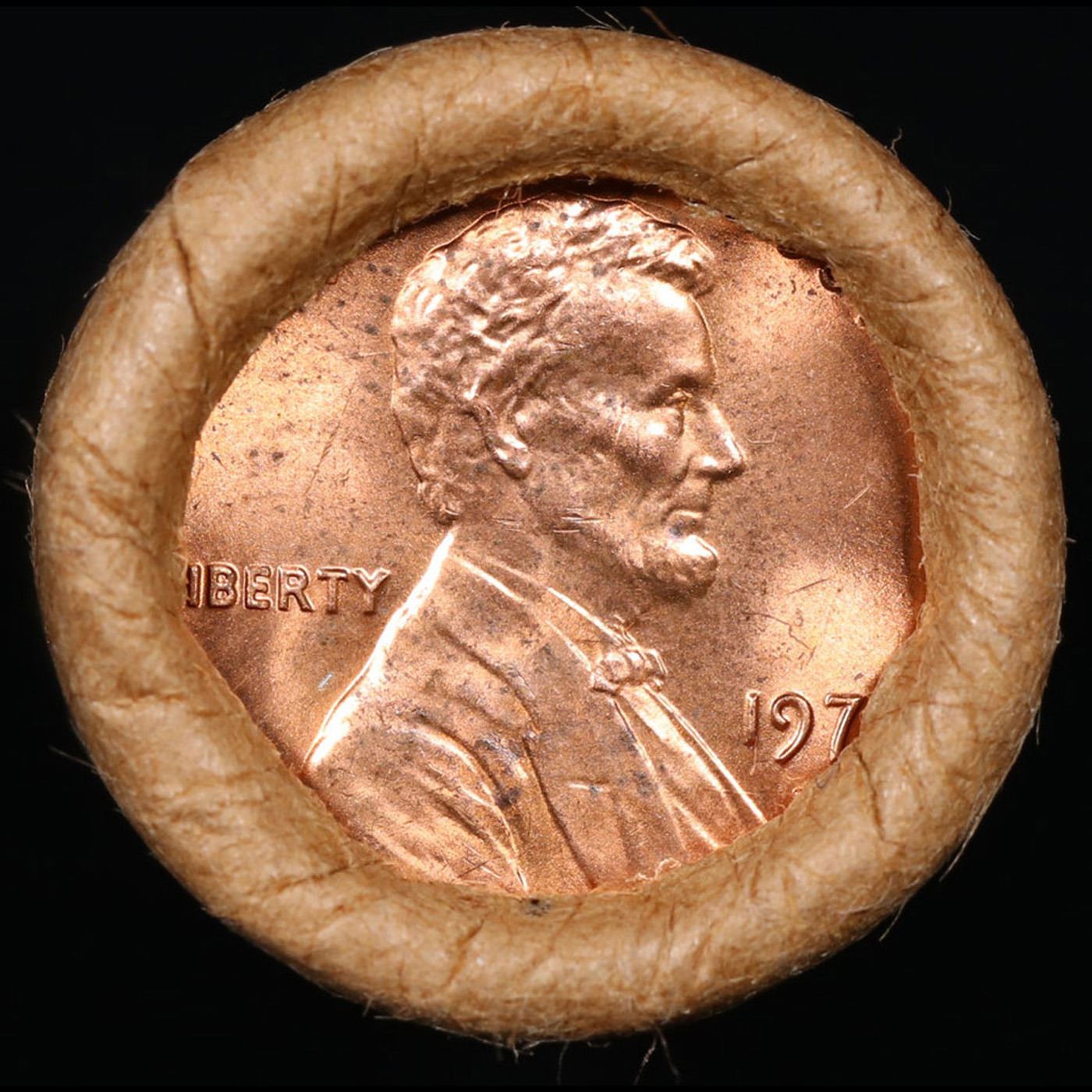 Shotgun Lincoln 1c roll, 1979-d 50 pcs Brandt Wrapper.. A terrific Shotgun roll of Lincoln cents. Most if not all coin should be cherry red. Trends ms65 rd $22