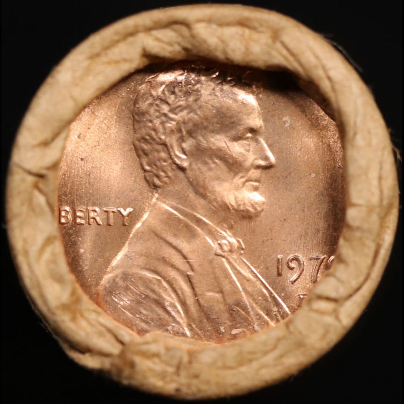 Shotgun Lincoln 1c roll, 1979-d 50 pcs Brandt Wrapper.. A terrific Shotgun roll of Lincoln cents. Most if not all coin should be cherry red. Trends ms65 rd $20