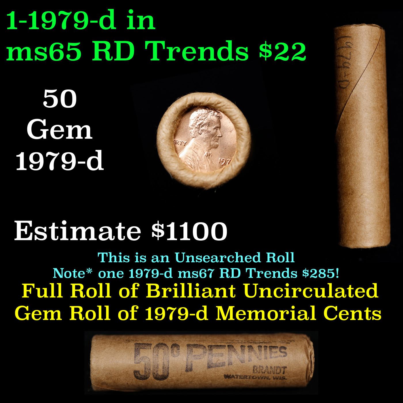 Shotgun Lincoln 1c roll, 1979-d 50 pcs Brandt Wrapper.. A terrific Shotgun roll of Lincoln cents. Most if not all coin should be cherry red.
