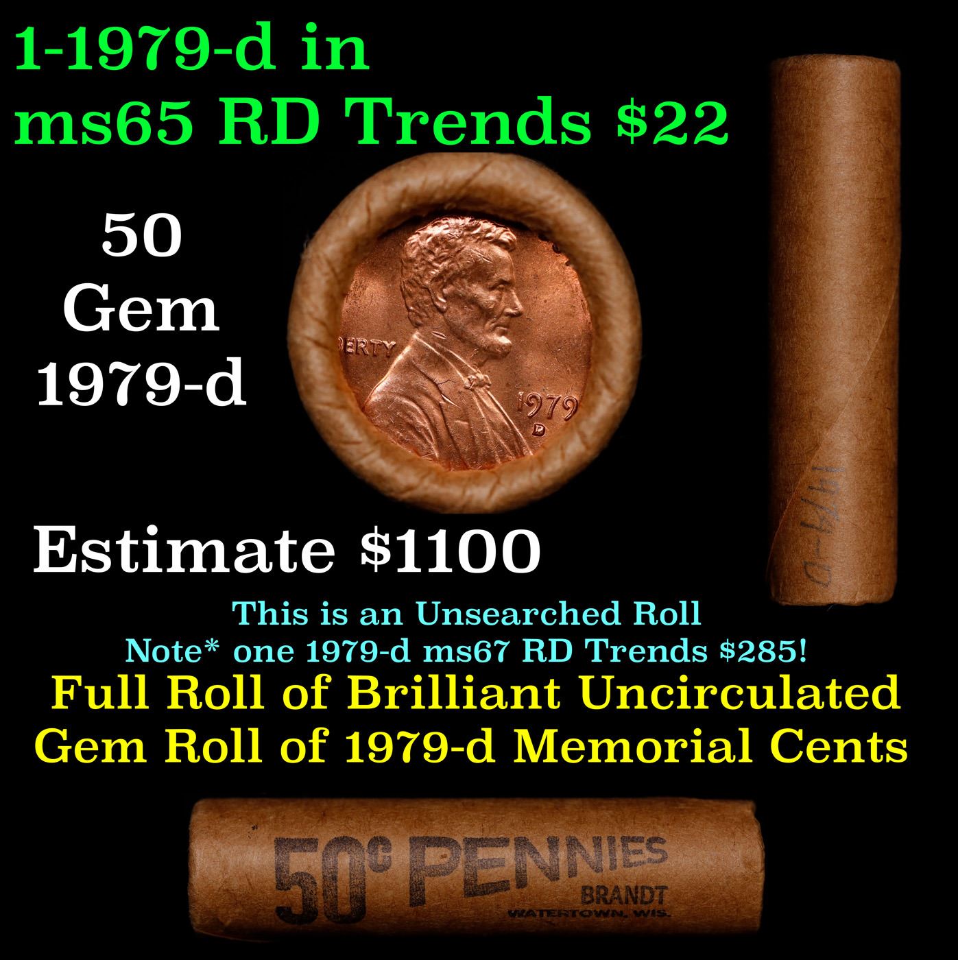 Shotgun Lincoln 1c roll, 1979-d 50 pcs Brandt Wrapper.. A terrific Shotgun roll of Lincoln cents. Most if not all coin should be cherry red.