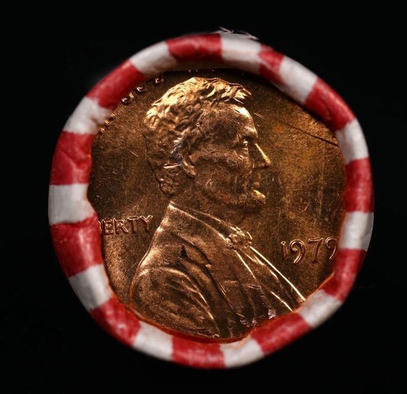 Shotgun Lincoln 1c roll, 1979-p 50 pcs Bank 50c Wrapper.. A terrific Shotgun roll of Lincoln cents. Most if not all coin should be cherry red.