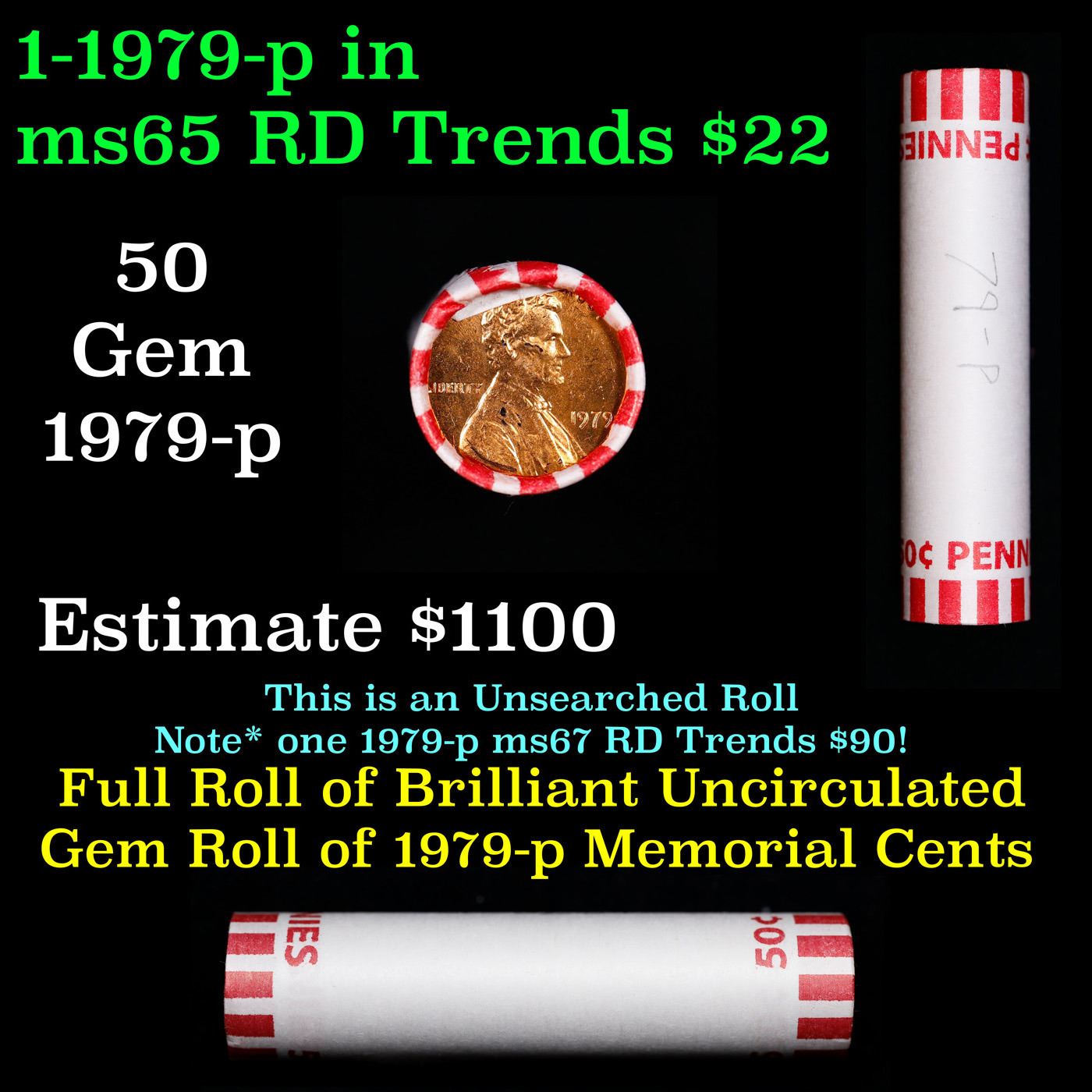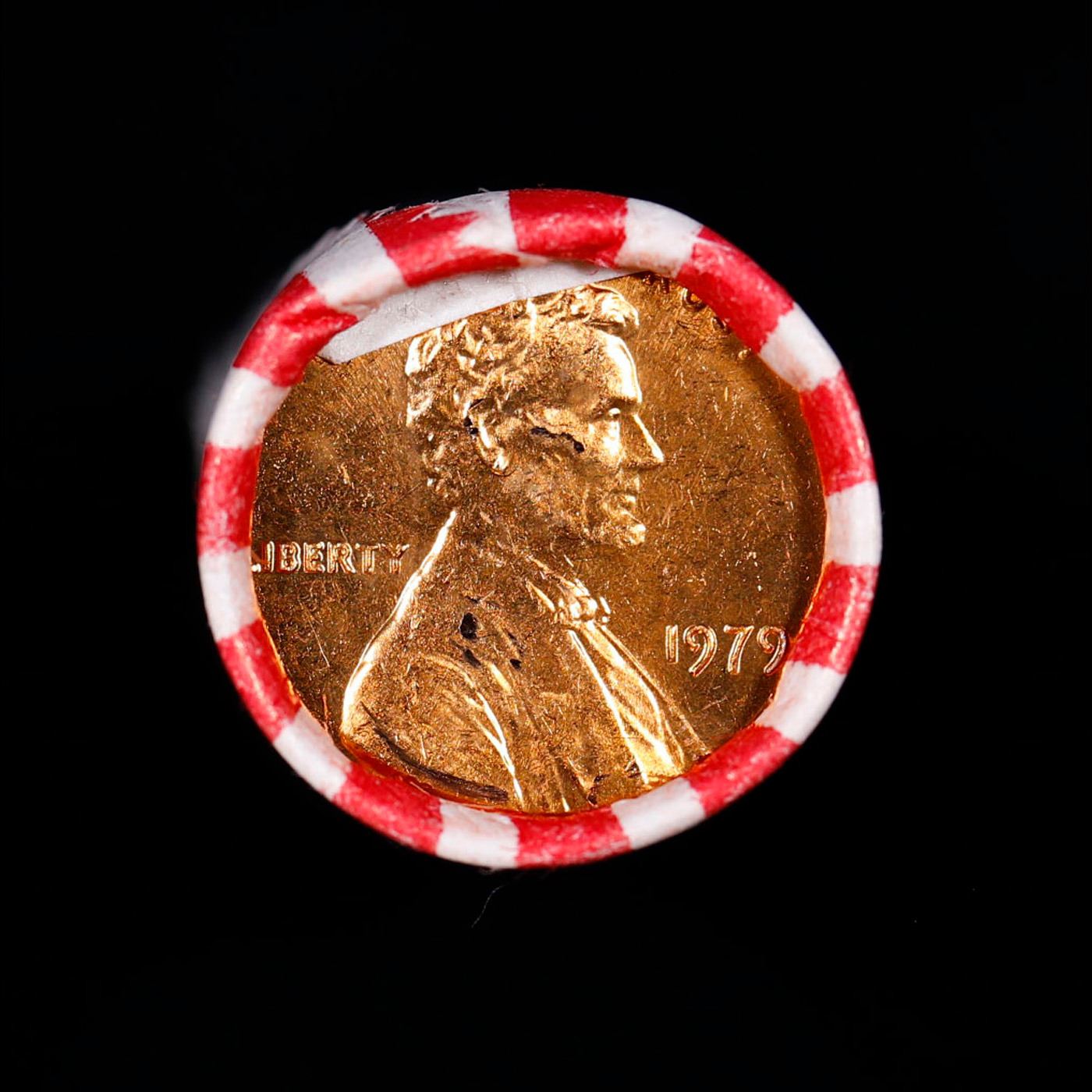 Shotgun Lincoln 1c roll, 1979-p 50 pcs Bank Wrapper.. A terrific Shotgun roll of Lincoln cents. Most if not all coin should be cherry red.