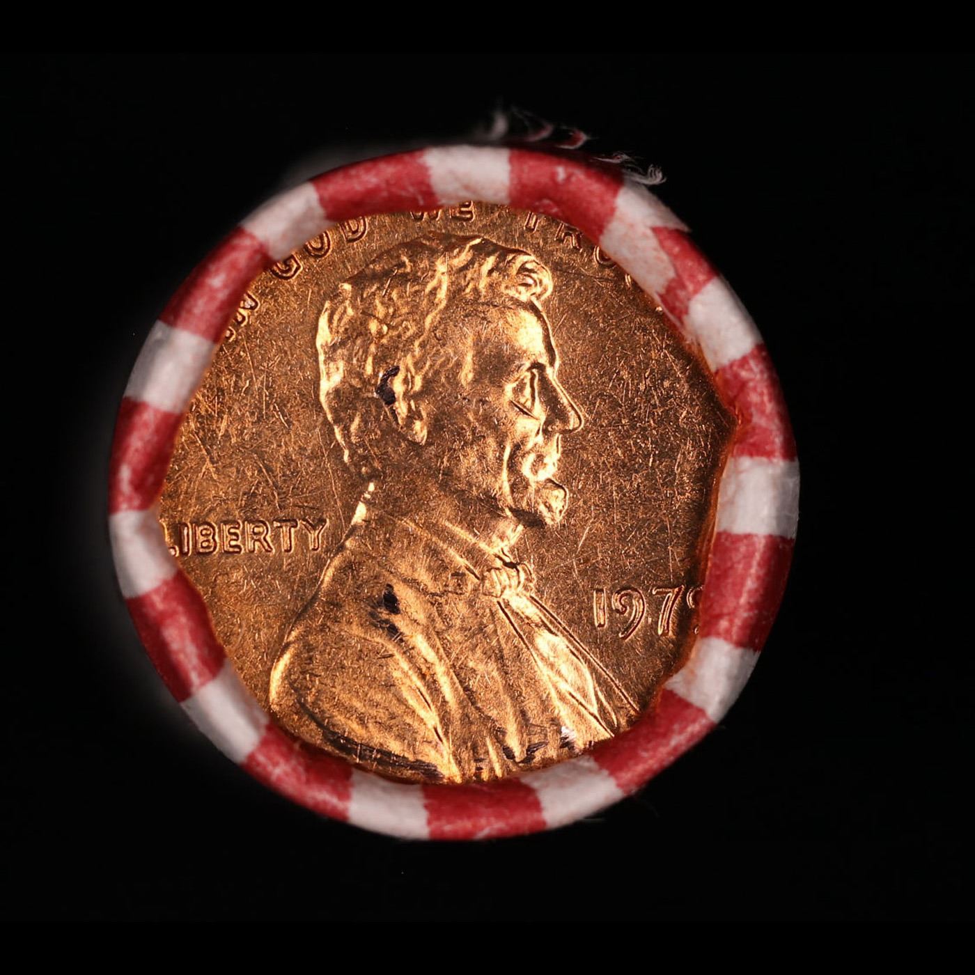 Shotgun Lincoln 1c roll, 1979-p 50 pcs Bank Wrapper.. A terrific Shotgun roll of Lincoln cents. Most if not all coin should be cherry red.