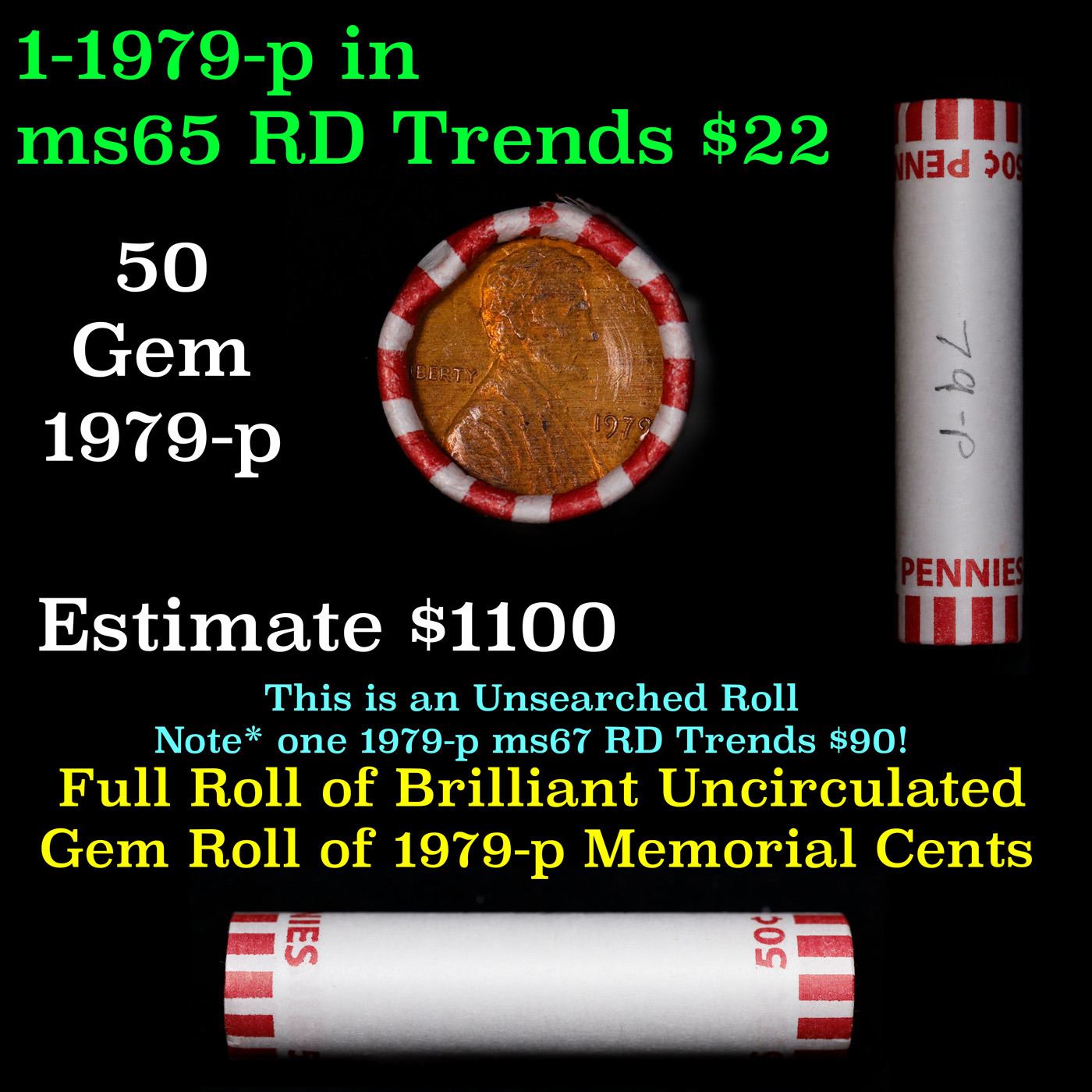 Shotgun Lincoln 1c roll, 1979-p 50 pcs Bank Wrapper.. A terrific Shotgun roll of Lincoln cents. Most if not all coin should be cherry red.