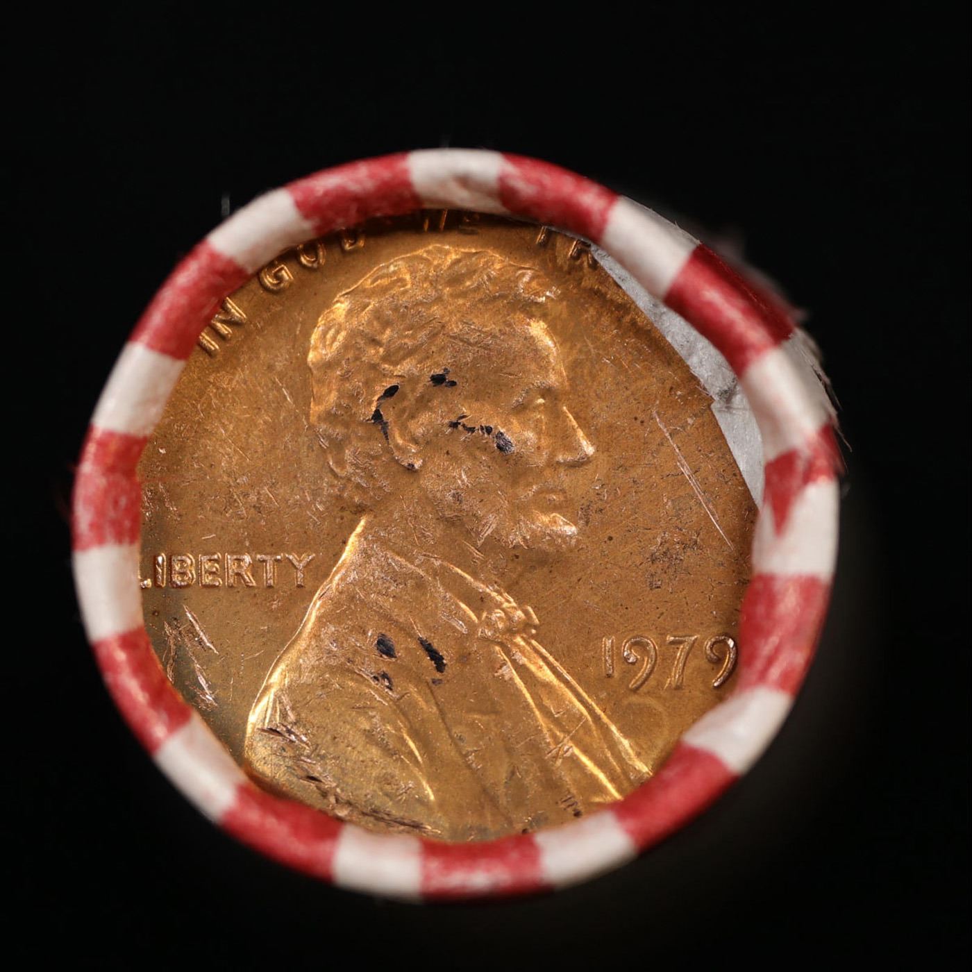 Shotgun Lincoln 1c roll, 1979-p 50 pcs Bank Wrapper.. A terrific Shotgun roll of Lincoln cents. Most if not all coin should be cherry red.