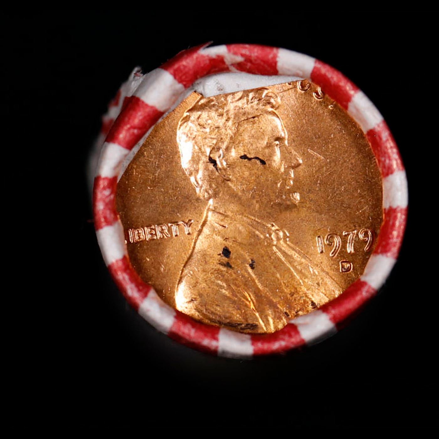 Shotgun Lincoln 1c roll, 1979-p 50 pcs Bank Wrapper.. A terrific Shotgun roll of Lincoln cents. Most if not all coin should be cherry red.