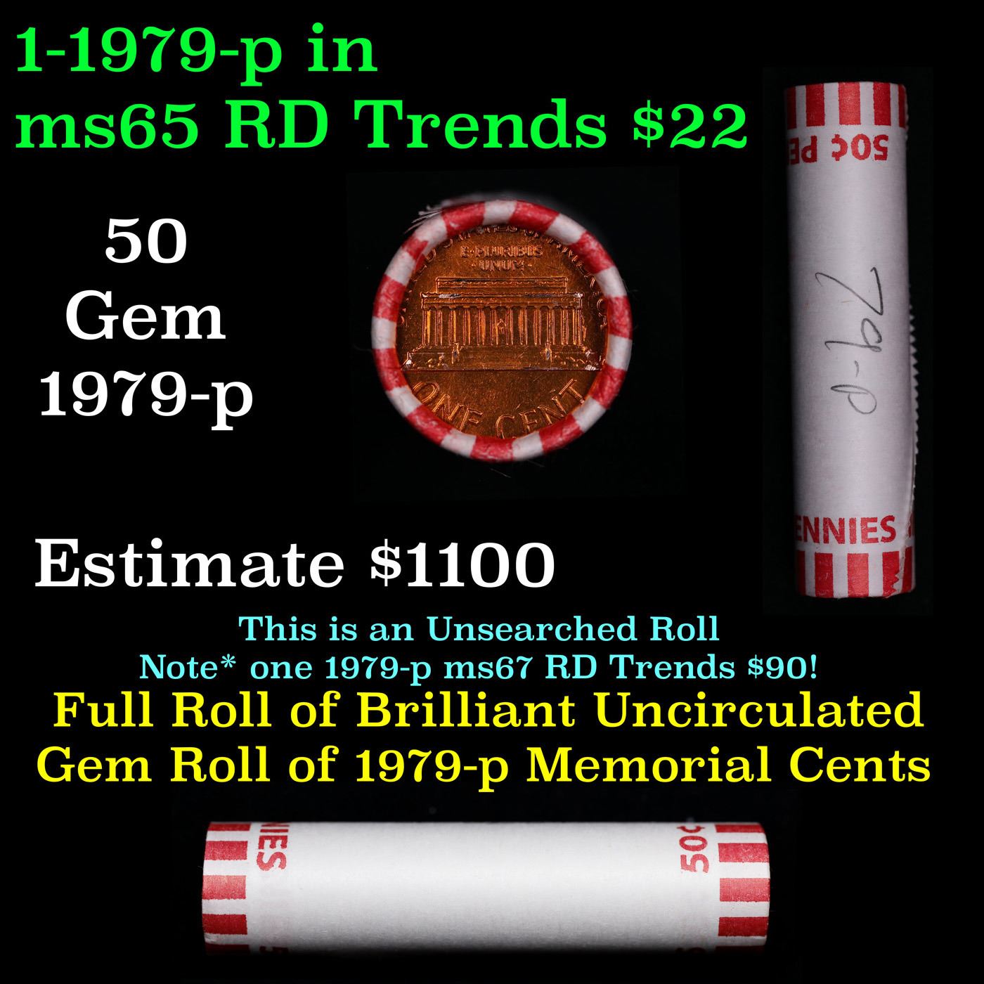 Shotgun Lincoln 1c roll, 1979-p 50 pcs Bank Wrapper.. A terrific Shotgun roll of Lincoln cents. Most if not all coin should be cherry red.