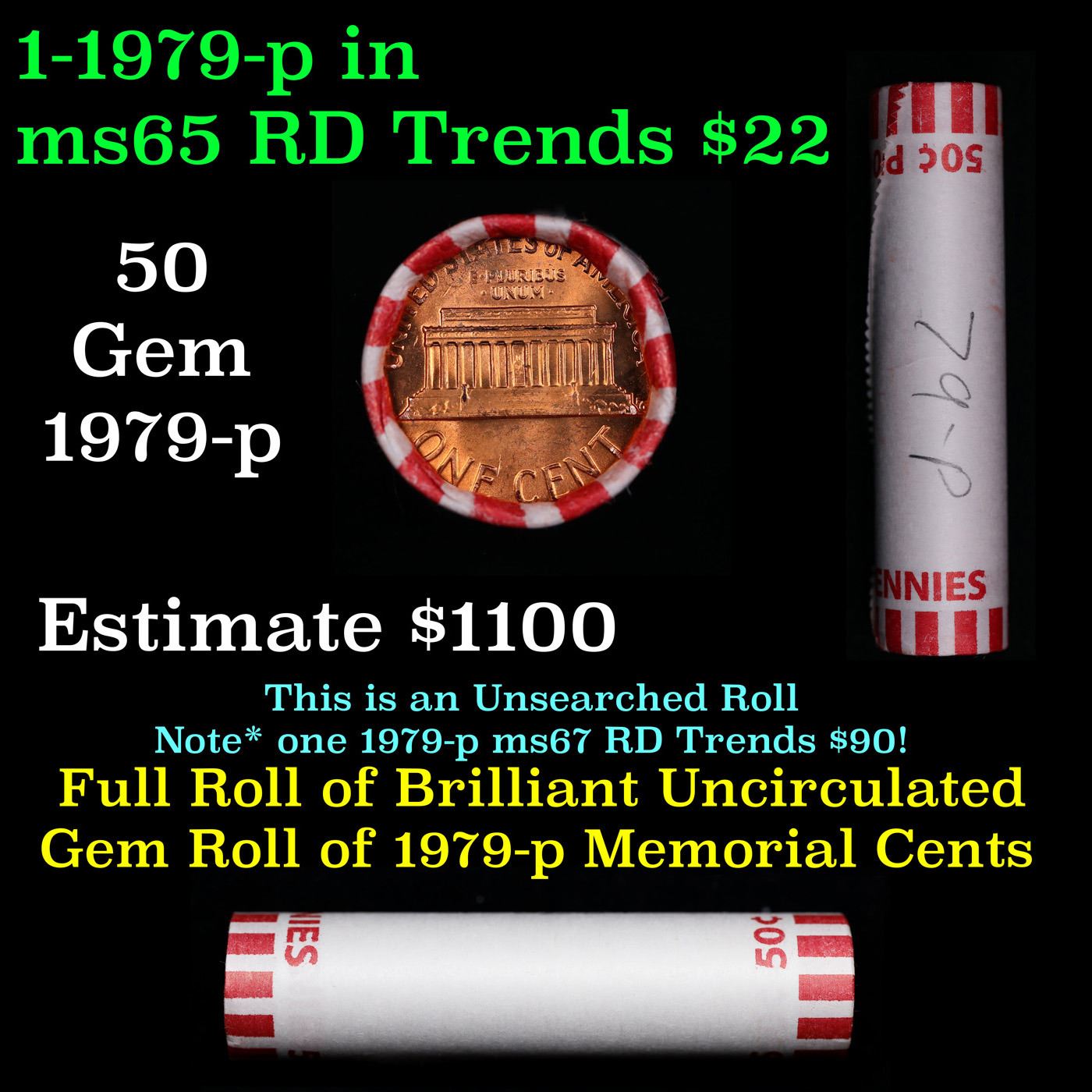 Shotgun Lincoln 1c roll, 1979-p 50 pcs Bank Wrapper.. A terrific Shotgun roll of Lincoln cents. Most if not all coin should be cherry red.