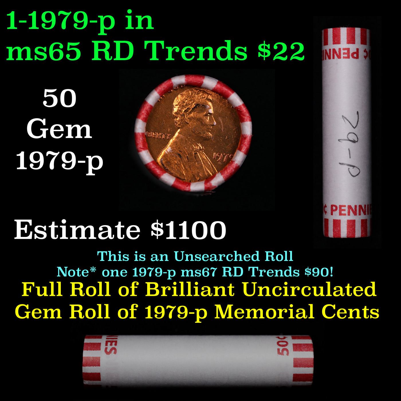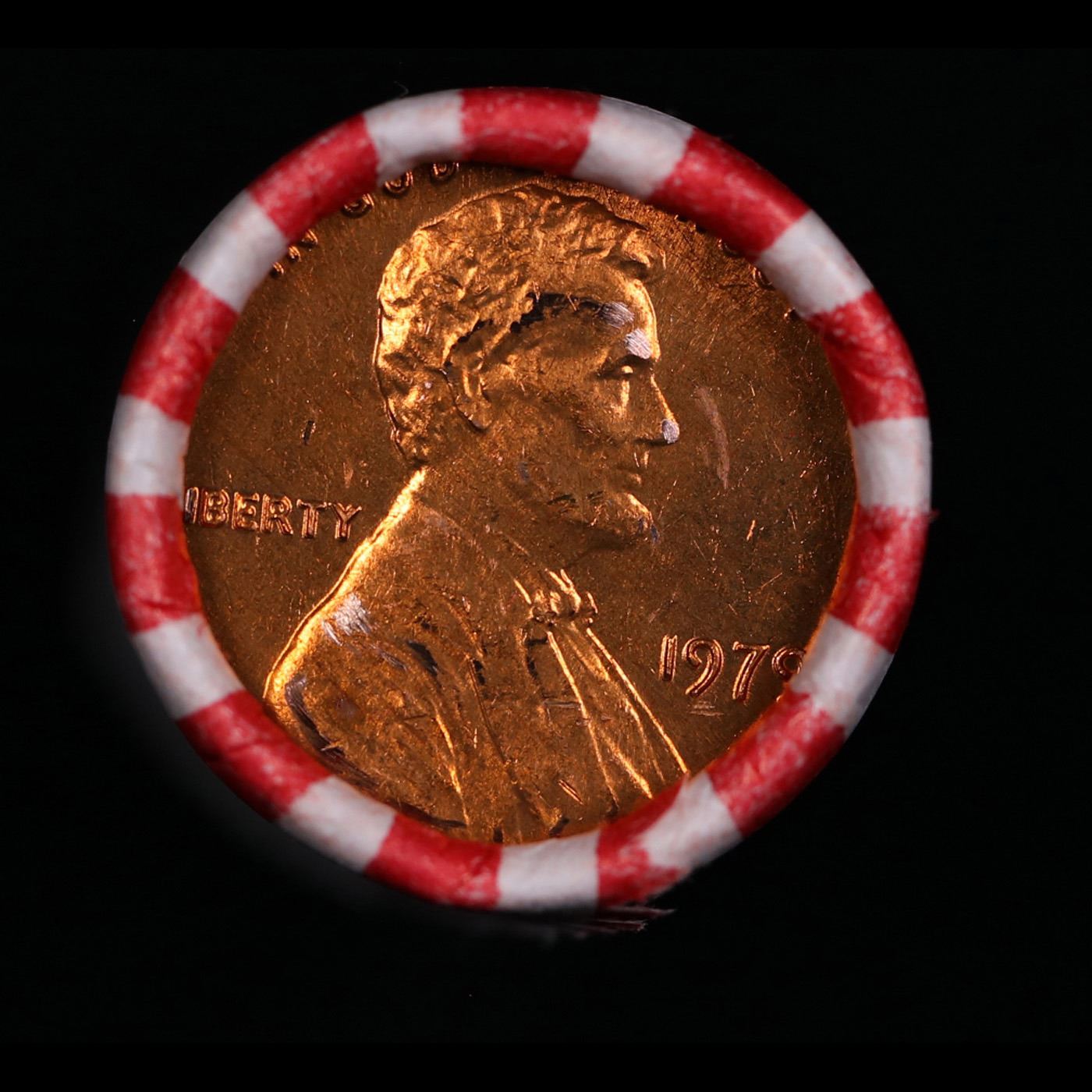 Shotgun Lincoln 1c roll, 1979-p 50 pcs Bank Wrapper.. A terrific Shotgun roll of Lincoln cents. Most if not all coin should be cherry red.