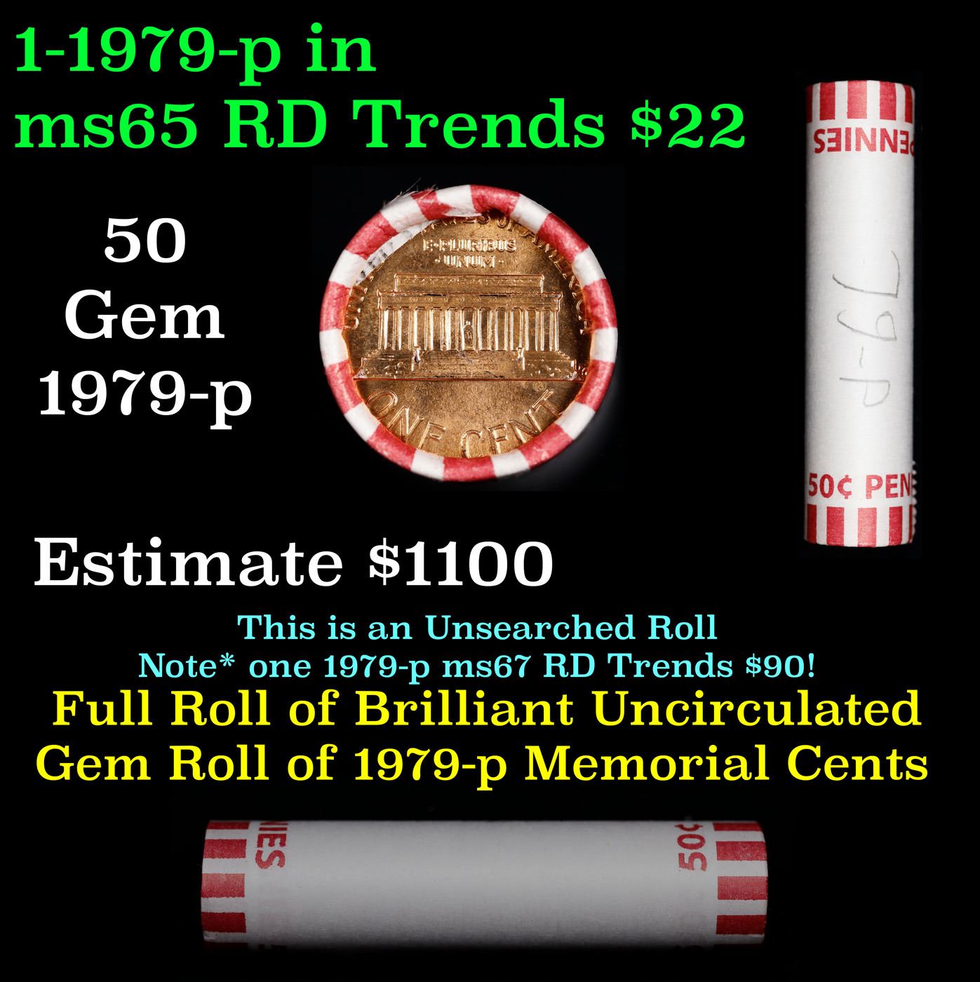 Shotgun Lincoln 1c roll, 1979-p 50 pcs Bank Wrapper.. A terrific Shotgun roll of Lincoln cents. Most if not all coin should be cherry red.