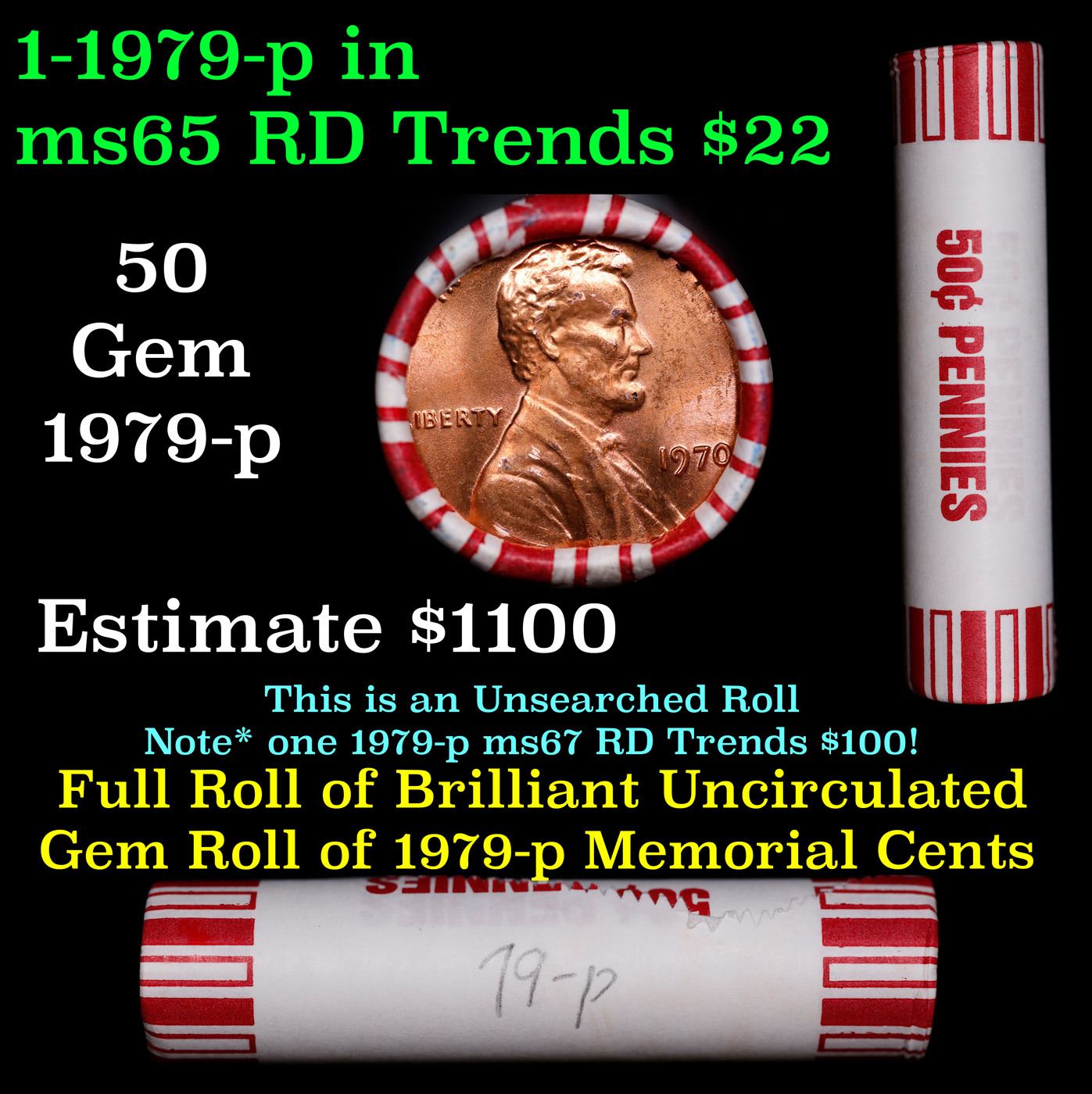 Shotgun Lincoln 1c roll, 1979-p 50 pcs Brandt 50c Wrapper.. A terrific Shotgun roll of Lincoln cents. Most if not all coin should be cherry red.