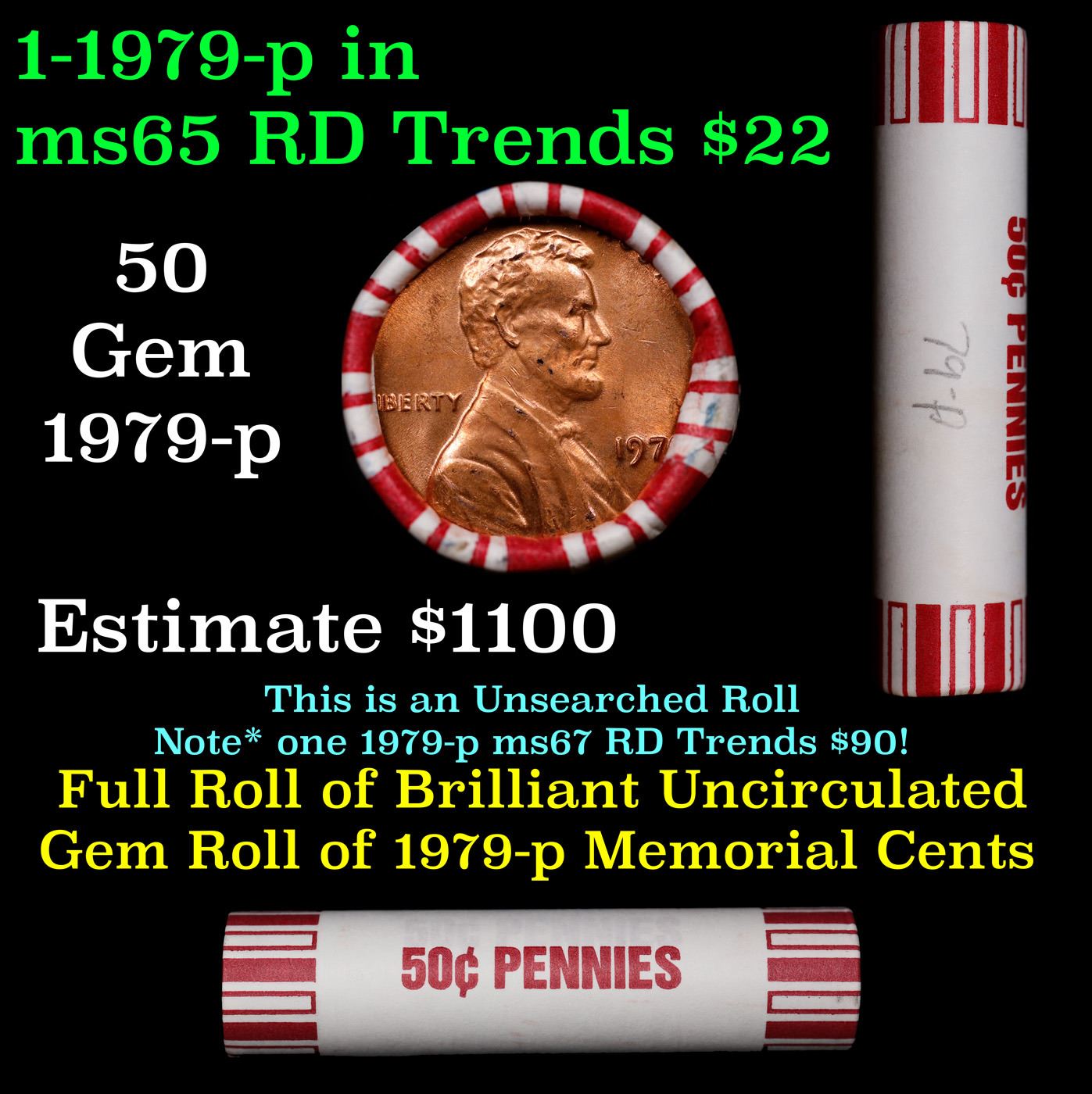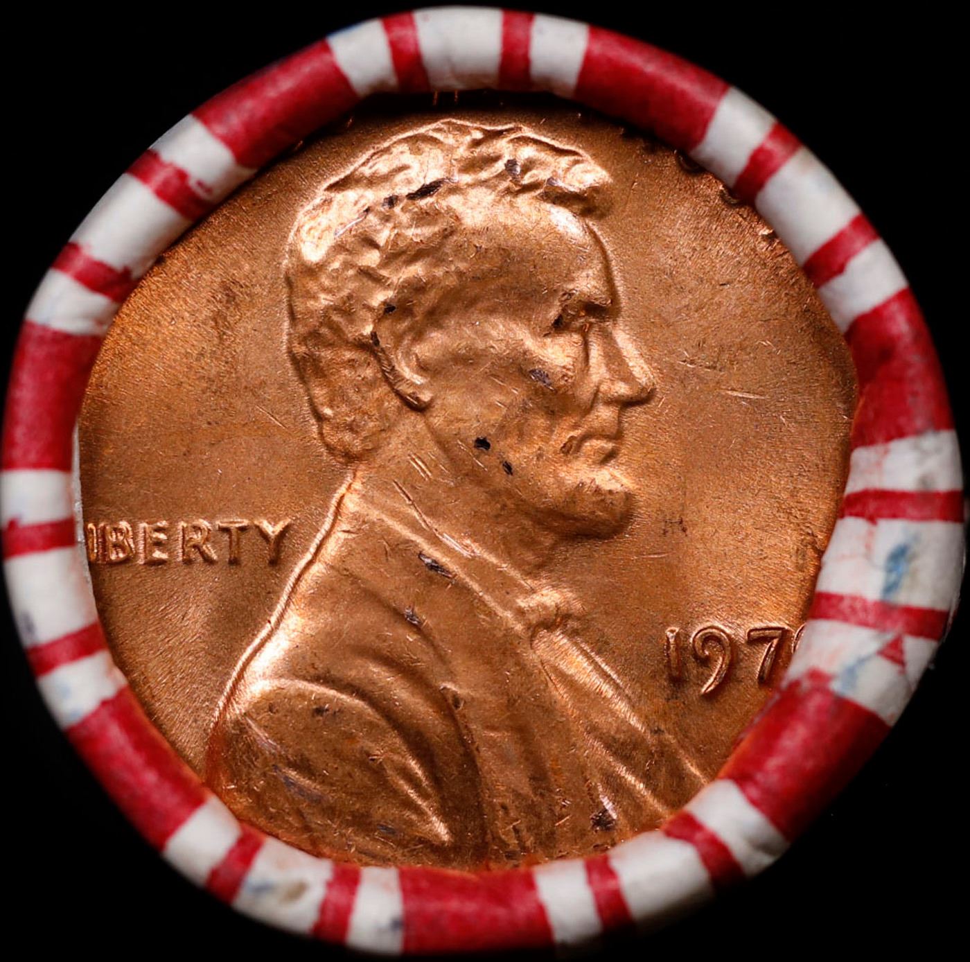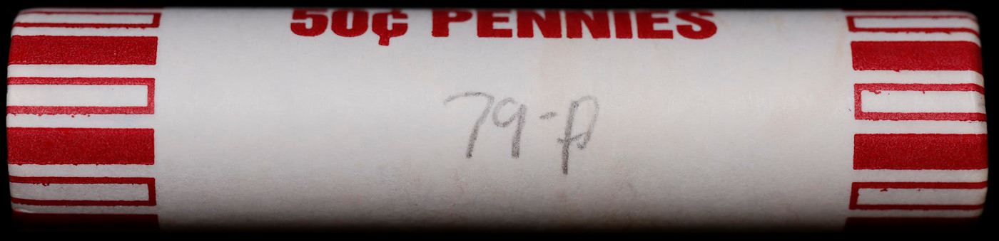 Shotgun Lincoln 1c roll, 1979-p 50 pcs Brandt 50c Wrapper.. A terrific Shotgun roll of Lincoln cents. Most if not all coin should be cherry red.