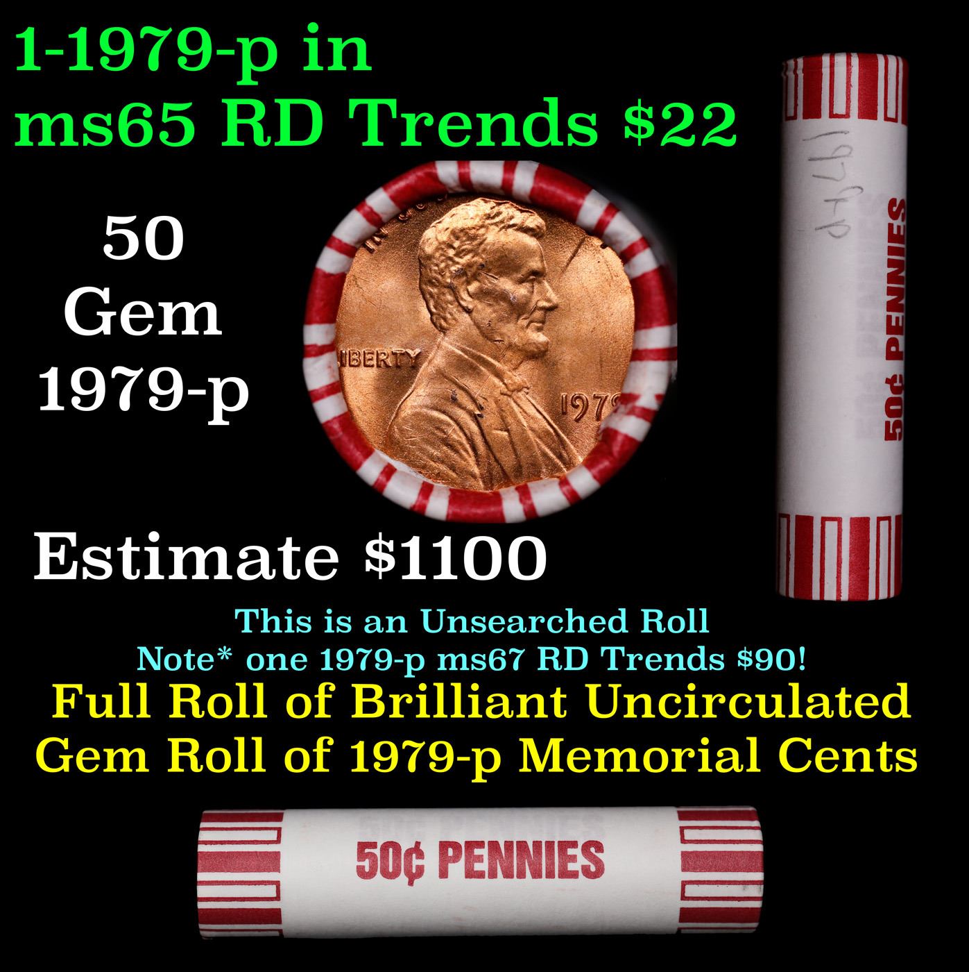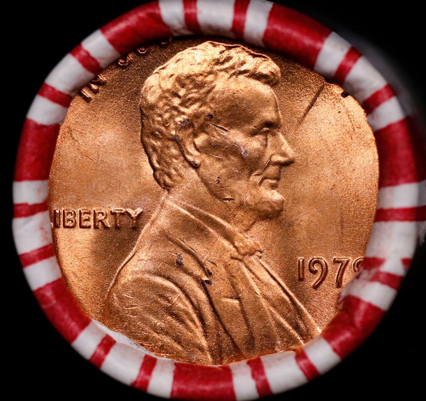 Shotgun Lincoln 1c roll, 1979-p 50 pcs Brandt 50c Wrapper.. A terrific Shotgun roll of Lincoln cents. Most if not all coin should be cherry red.