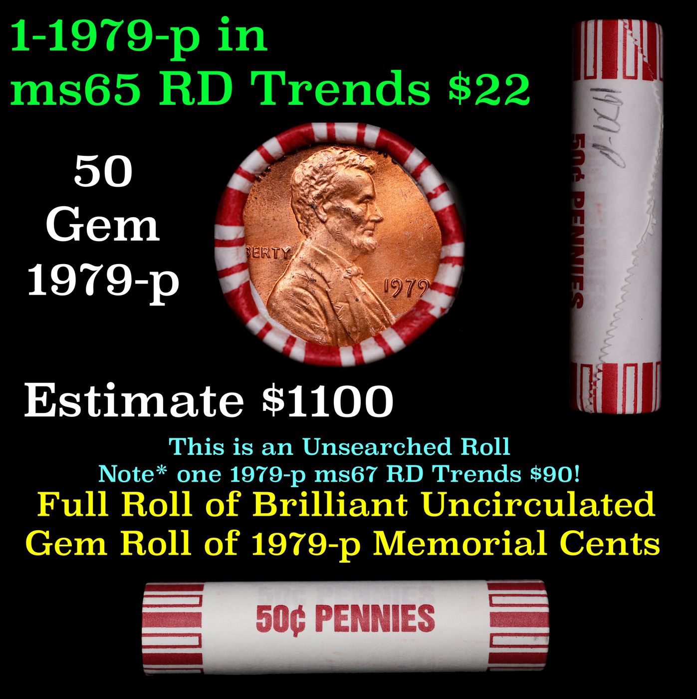 Shotgun Lincoln 1c roll, 1979-p 50 pcs Brandt 50c Wrapper.. A terrific Shotgun roll of Lincoln cents. Most if not all coin should be cherry red.