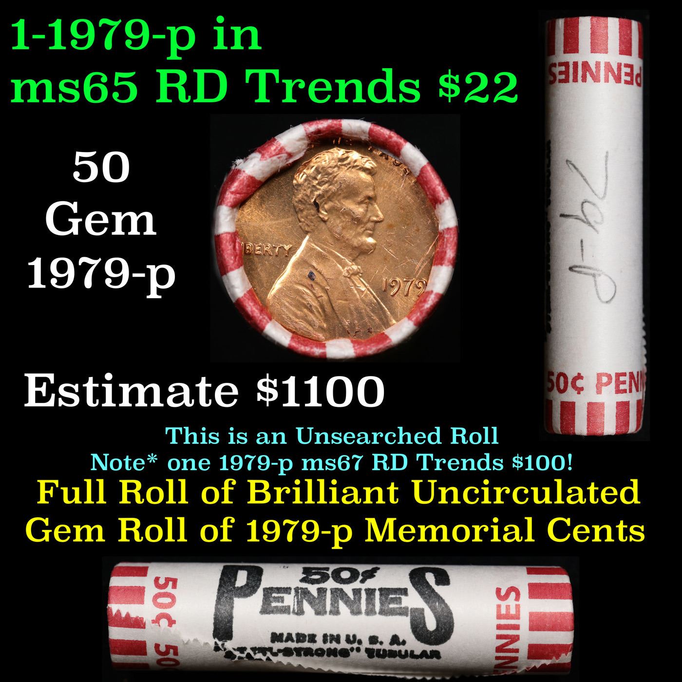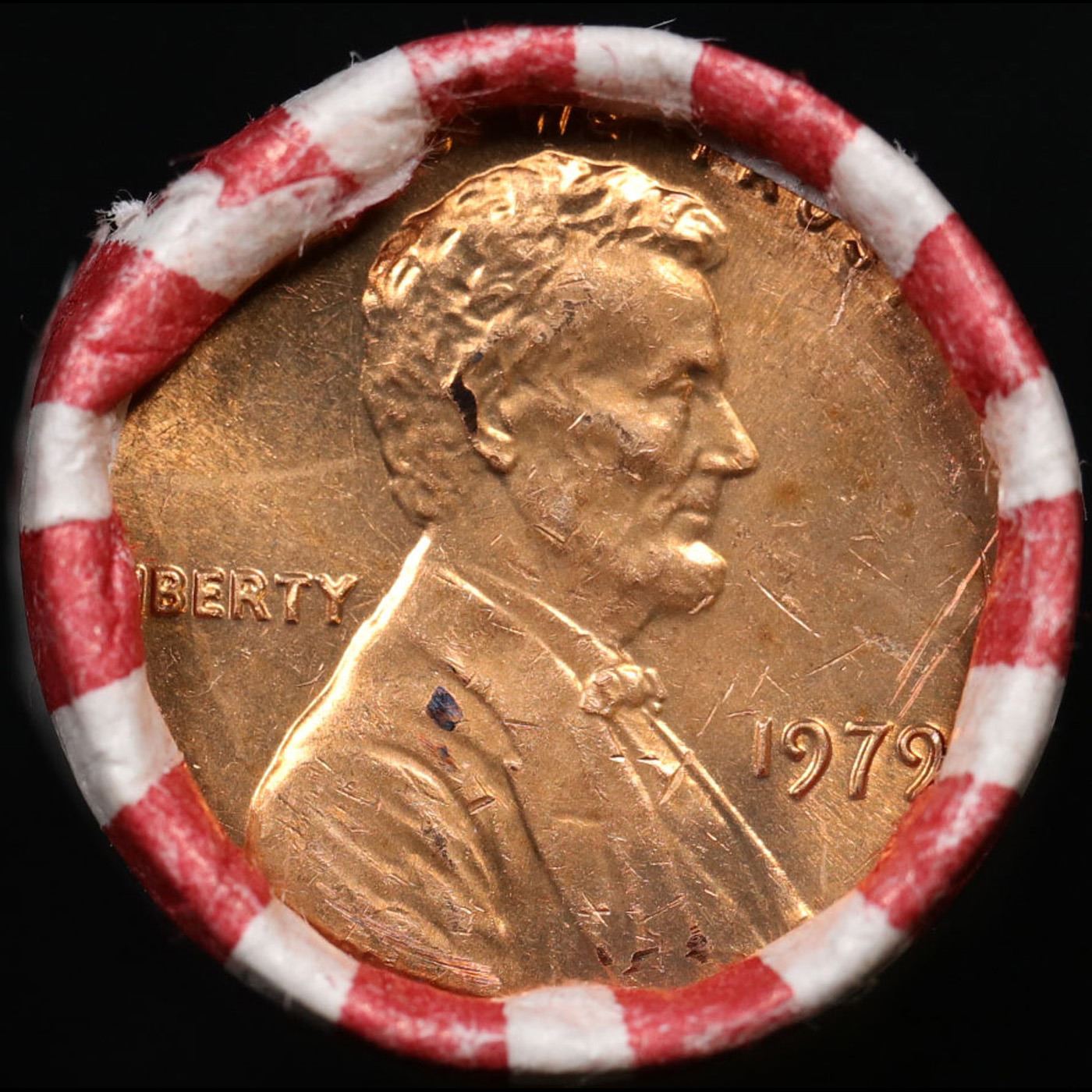 Shotgun Lincoln 1c roll, 1979-p 50 pcs Steel Strong Wrapper.. A terrific Shotgun roll of Lincoln cents. Most if not all coin should be cherry red.
