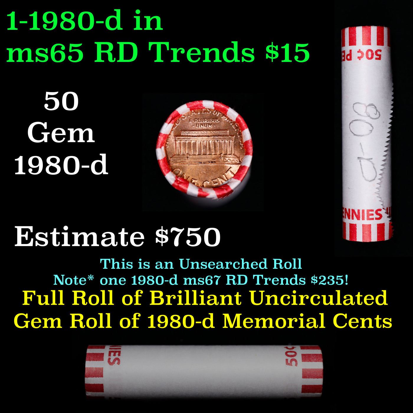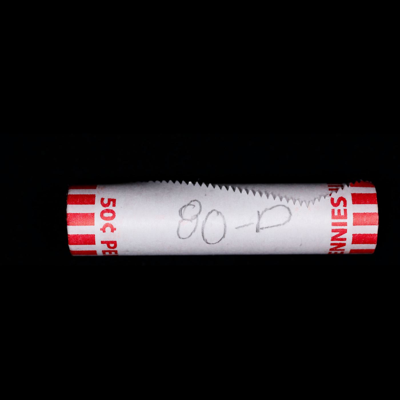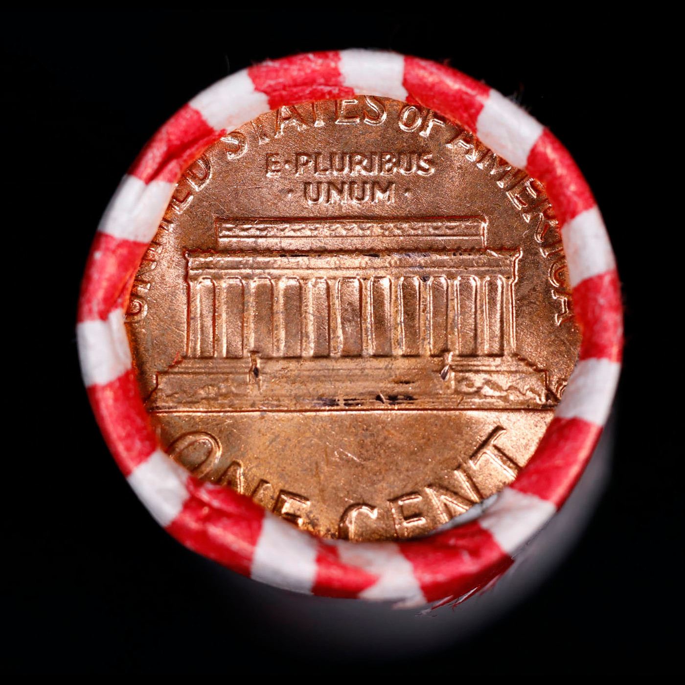 Shotgun Lincoln 1c roll, 1980-d 50 pcs Bank Wrapper.. A terrific Shotgun roll of Lincoln cents. Most if not all coin should be cherry red.