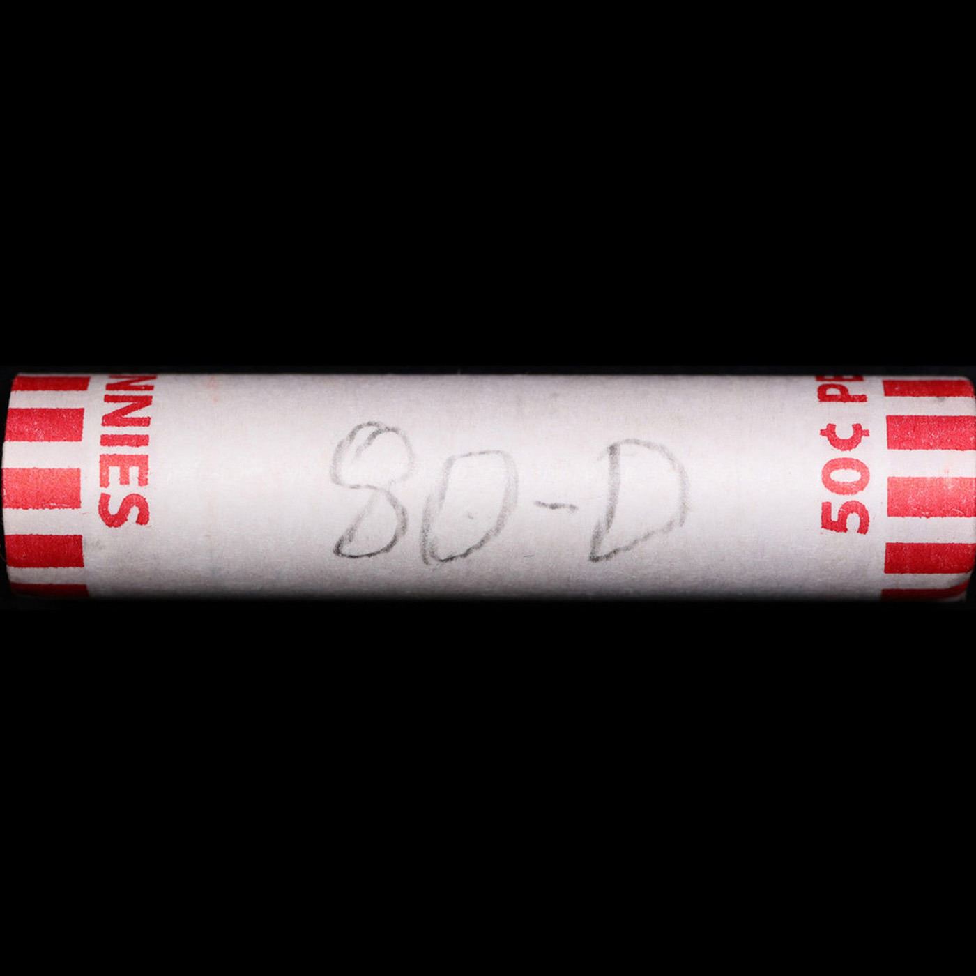 Shotgun Lincoln 1c roll, 1980-d 50 pcs Bank Wrapper.. A terrific Shotgun roll of Lincoln cents. Most if not all coin should be cherry red.