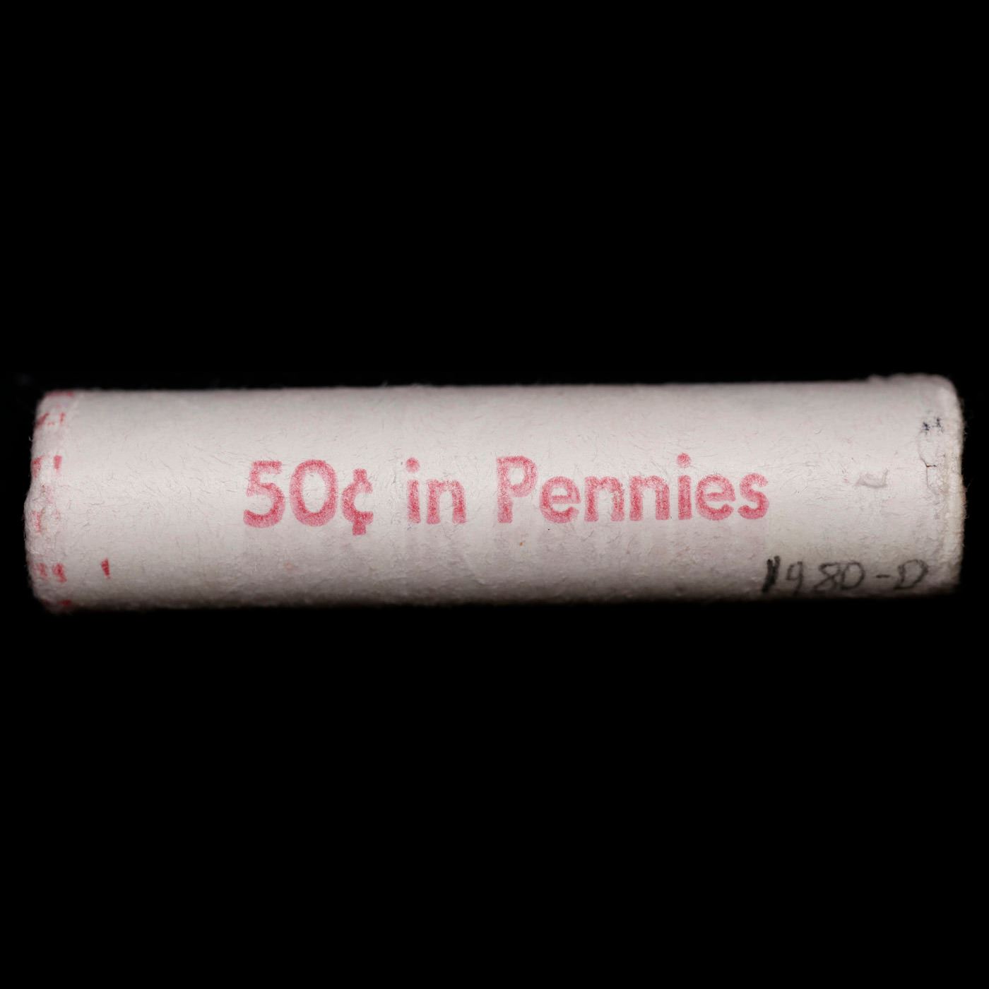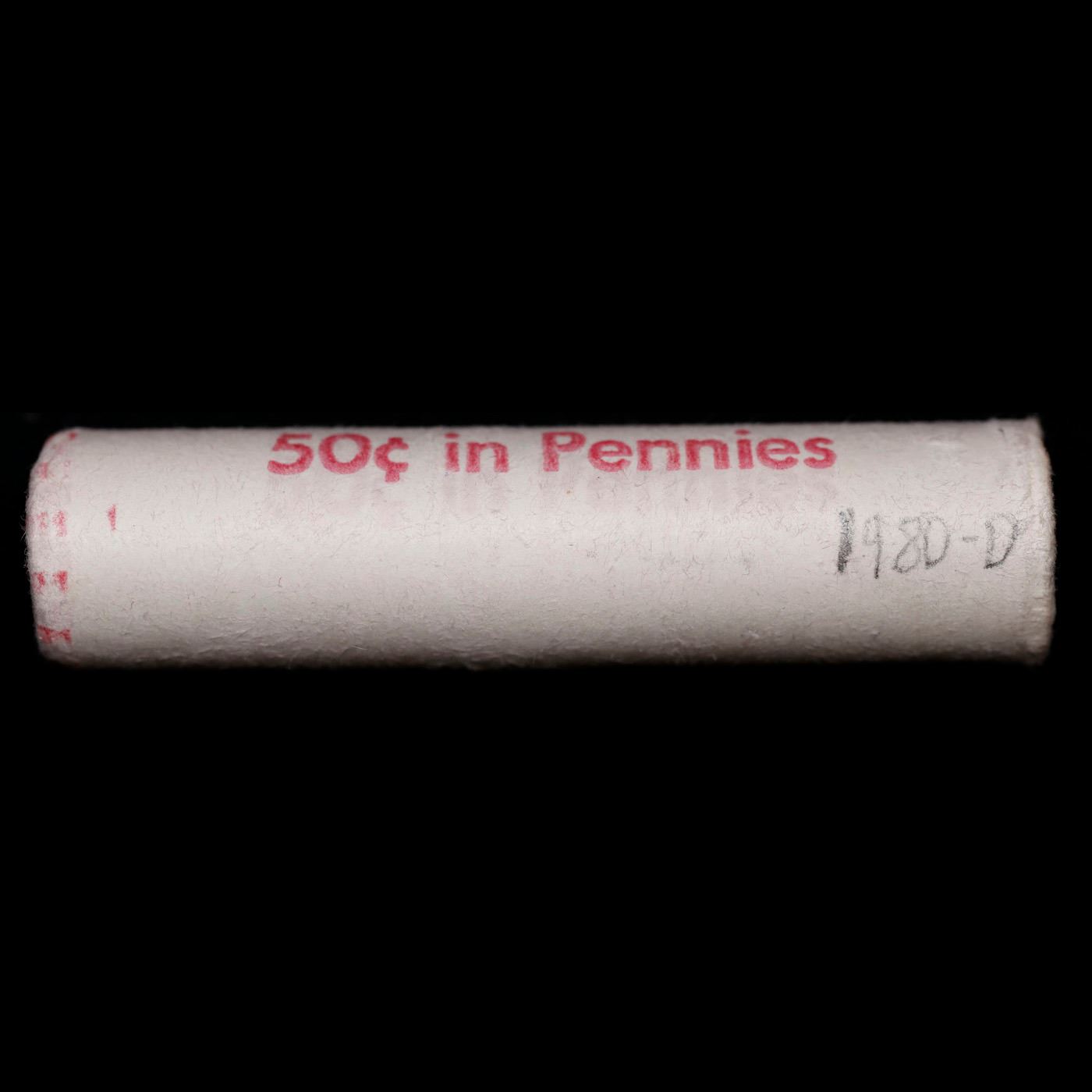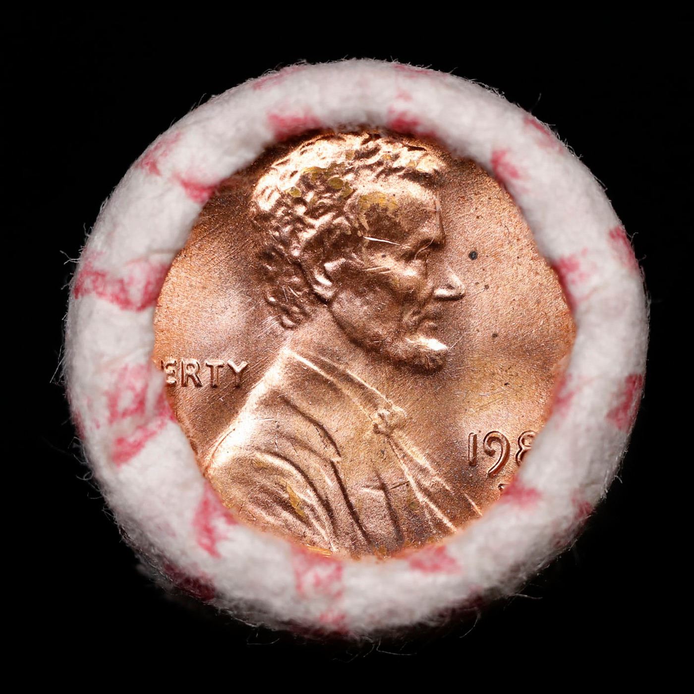 Shotgun Lincoln 1c roll, 1980-d 50 pcs Penny Wrapper.. A terrific Shotgun roll of Lincoln cents. Most if not all coin should be cherry red.
