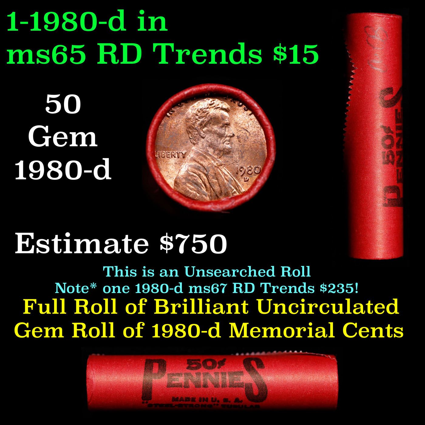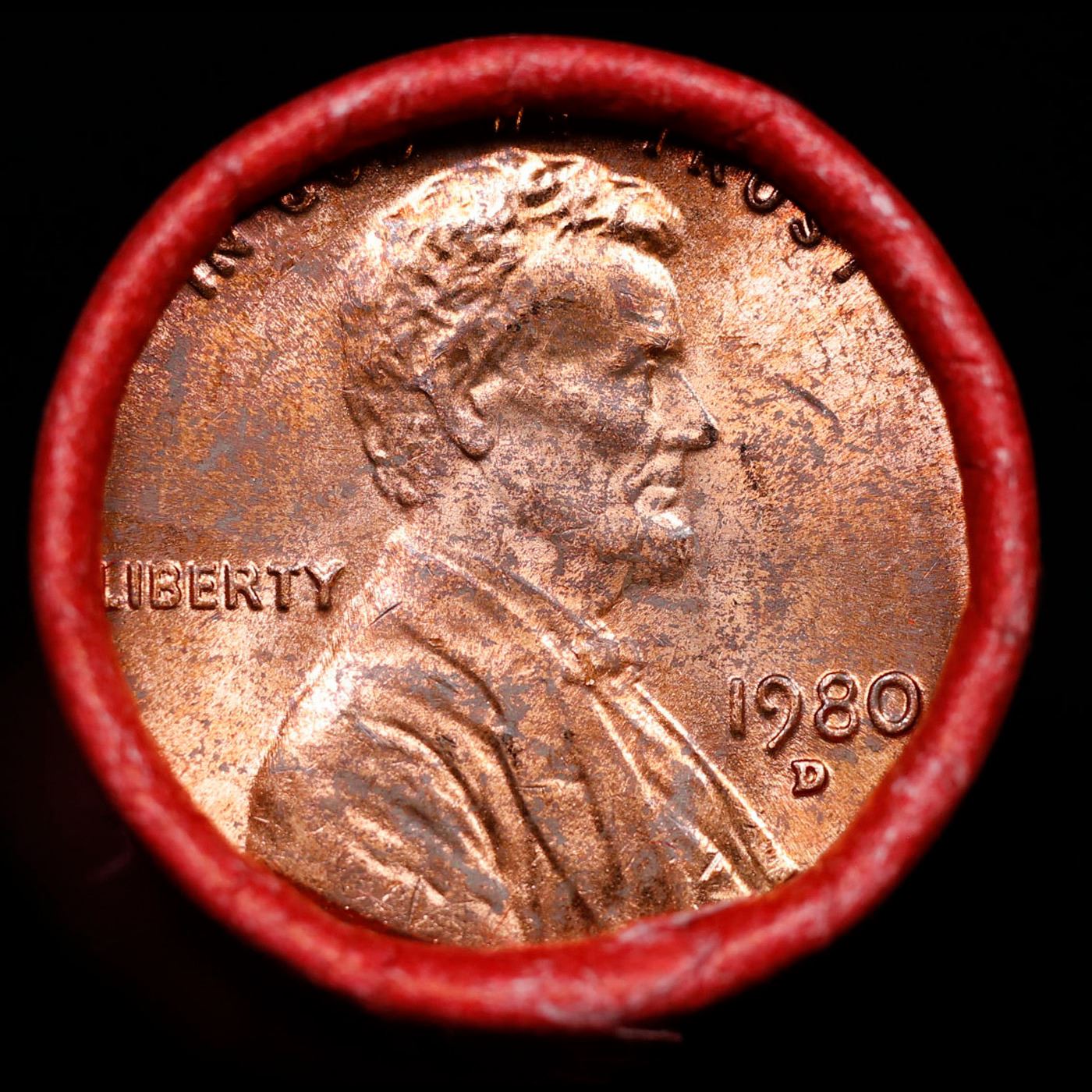 Shotgun Lincoln 1c roll, 1980-d 50 pcs Steel-Strong Wrapper..         A terrific Shotgun roll of Lincoln cents. Most if not all coin should be cherry red.