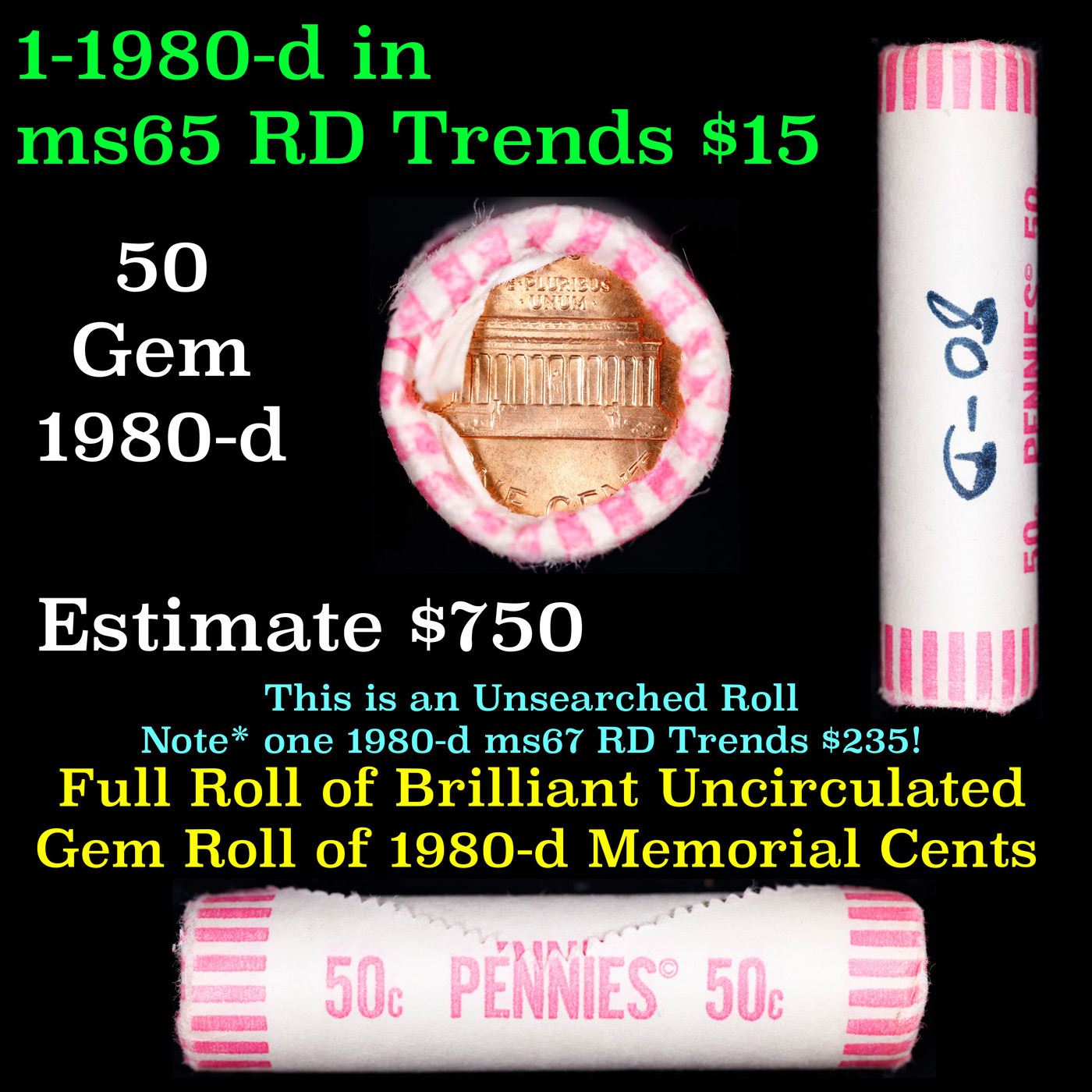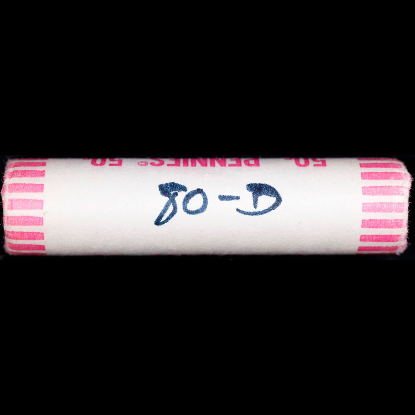 Shotgun Lincoln 1c roll, 1980-d 50 pcs Wrapper . A terrific Shotgun roll of Lincoln cents. All coins appear to be cherry red. Trends ms65 rd $15