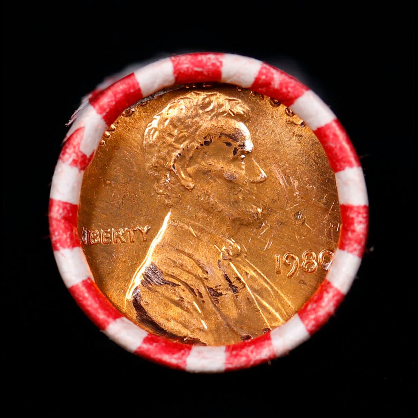 Shotgun Lincoln 1c roll, 1980-p 50 pcs Bank Wrapper.. A terrific Shotgun roll of Lincoln cents. Most if not all coin should be cherry red.