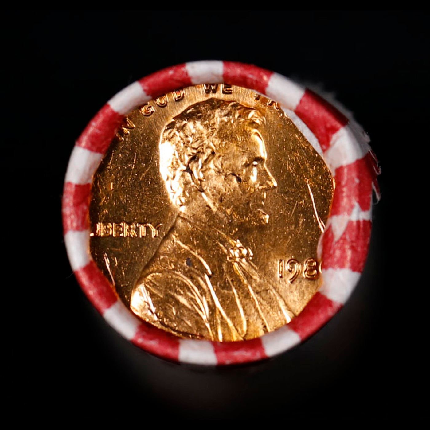 Shotgun Lincoln 1c roll, 1980-p 50 pcs Bank Wrapper.. A terrific Shotgun roll of Lincoln cents. Most if not all coin should be cherry red.