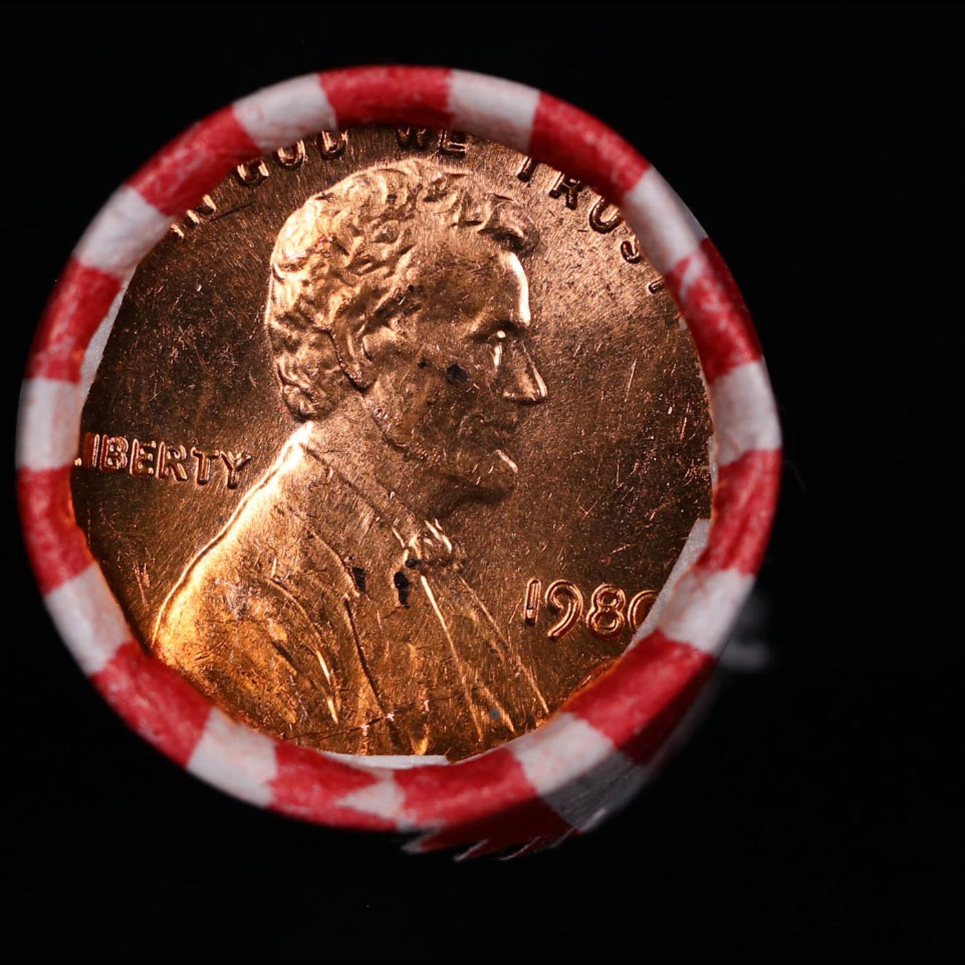 Shotgun Lincoln 1c roll, 1980-p 50 pcs Bank Wrapper.. A terrific Shotgun roll of Lincoln cents. Most if not all coin should be cherry red.
