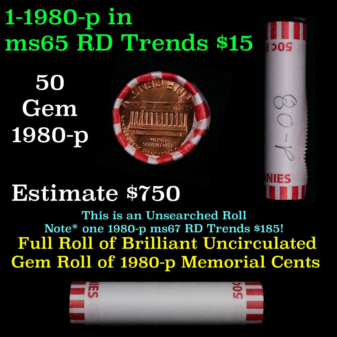 Shotgun Lincoln 1c roll, 1980-p 50 pcs Bank Wrapper.. A terrific Shotgun roll of Lincoln cents. Most if not all coin should be cherry red.