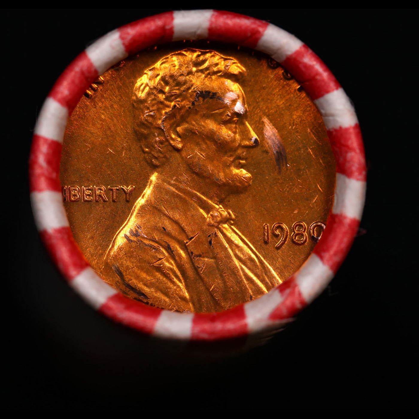 Shotgun Lincoln 1c roll, 1980-p 50 pcs Bank Wrapper.. A terrific Shotgun roll of Lincoln cents. Most if not all coin should be cherry red.