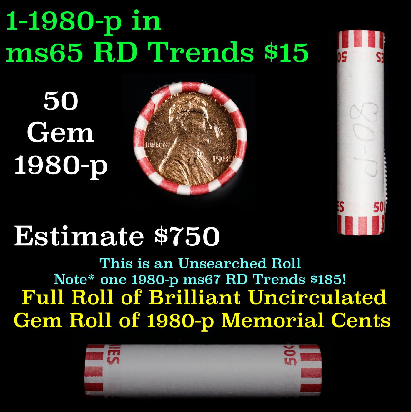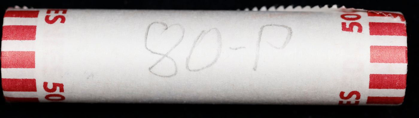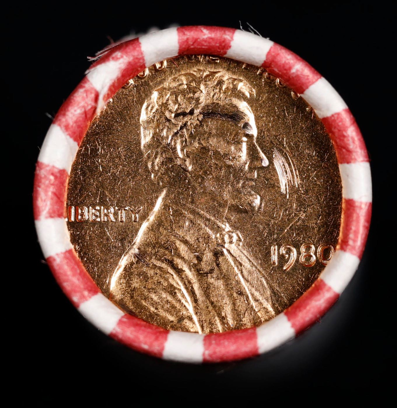 Shotgun Lincoln 1c roll, 1980-p 50 pcs Bank Wrapper.. A terrific Shotgun roll of Lincoln cents. Most if not all coin should be cherry red.