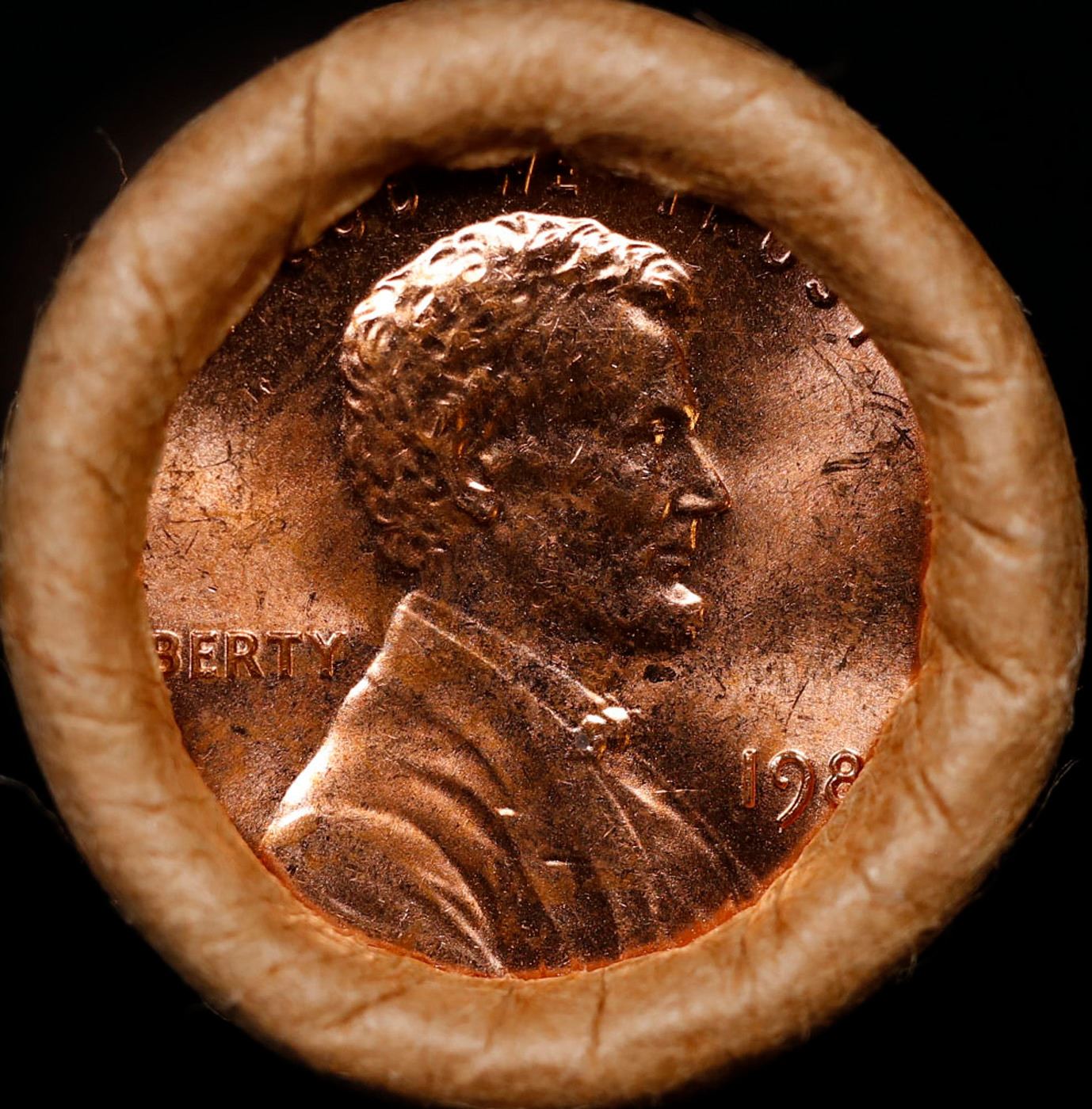 Shotgun Lincoln 1c roll, 1980-p 50 pcs Bank Wrapper. A terrific Shotgun roll of Lincoln cents. Most if not all coin should be cherry red.